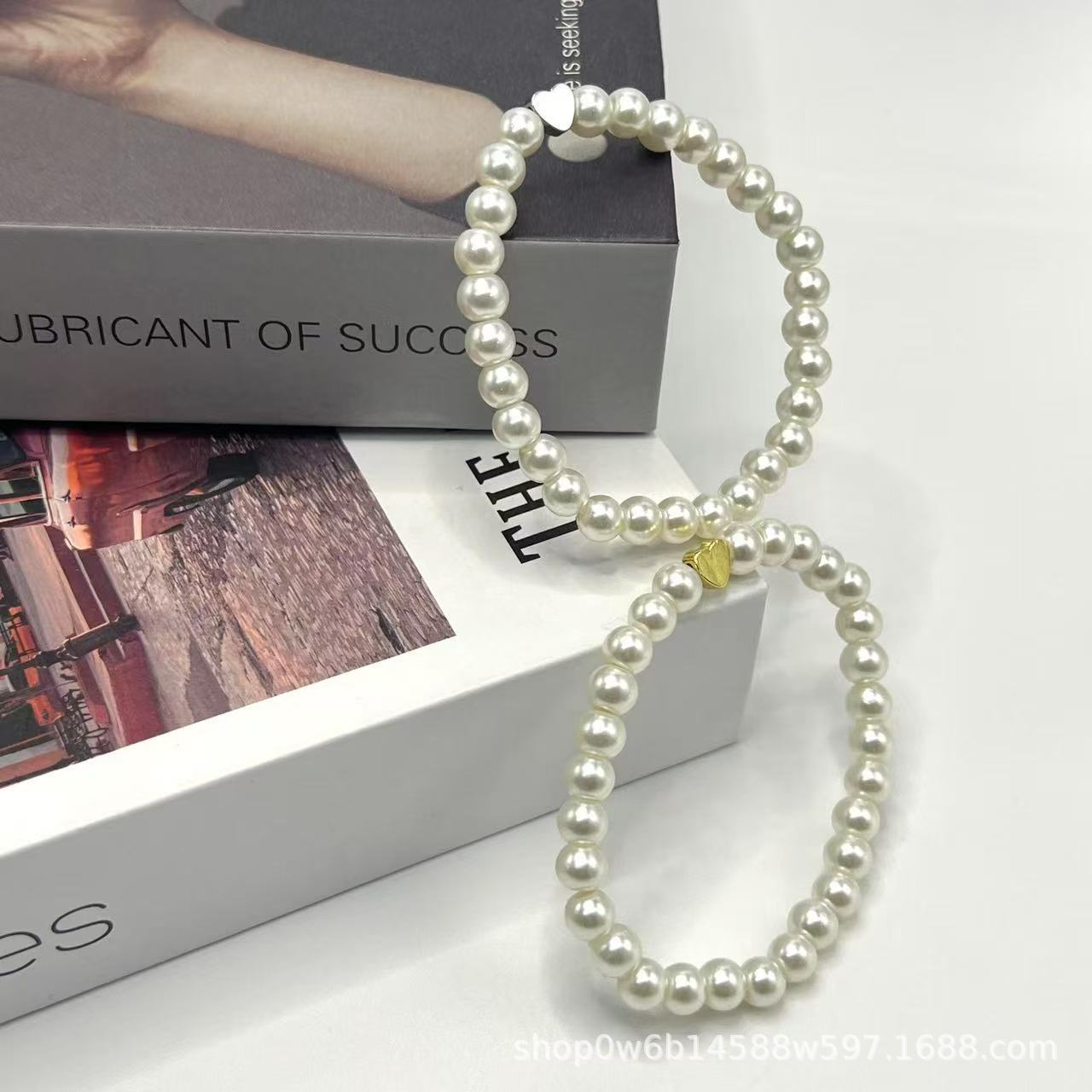 ゴールデン ハート パール ガラス ブレスレット,シルバー ハート パール ガラス ブレスレット