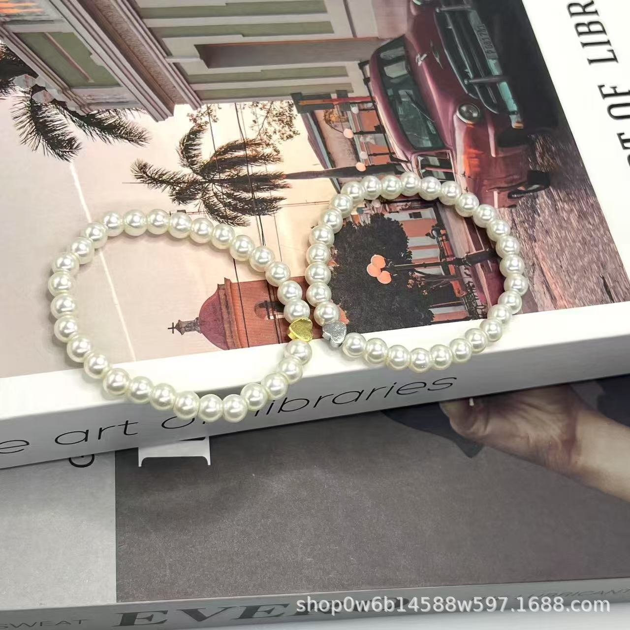 新しい手作りビーズ単層大小真珠ブレスレット幾何学的な愛のファッション多用途ブレスレット女性のブレスレット卸売