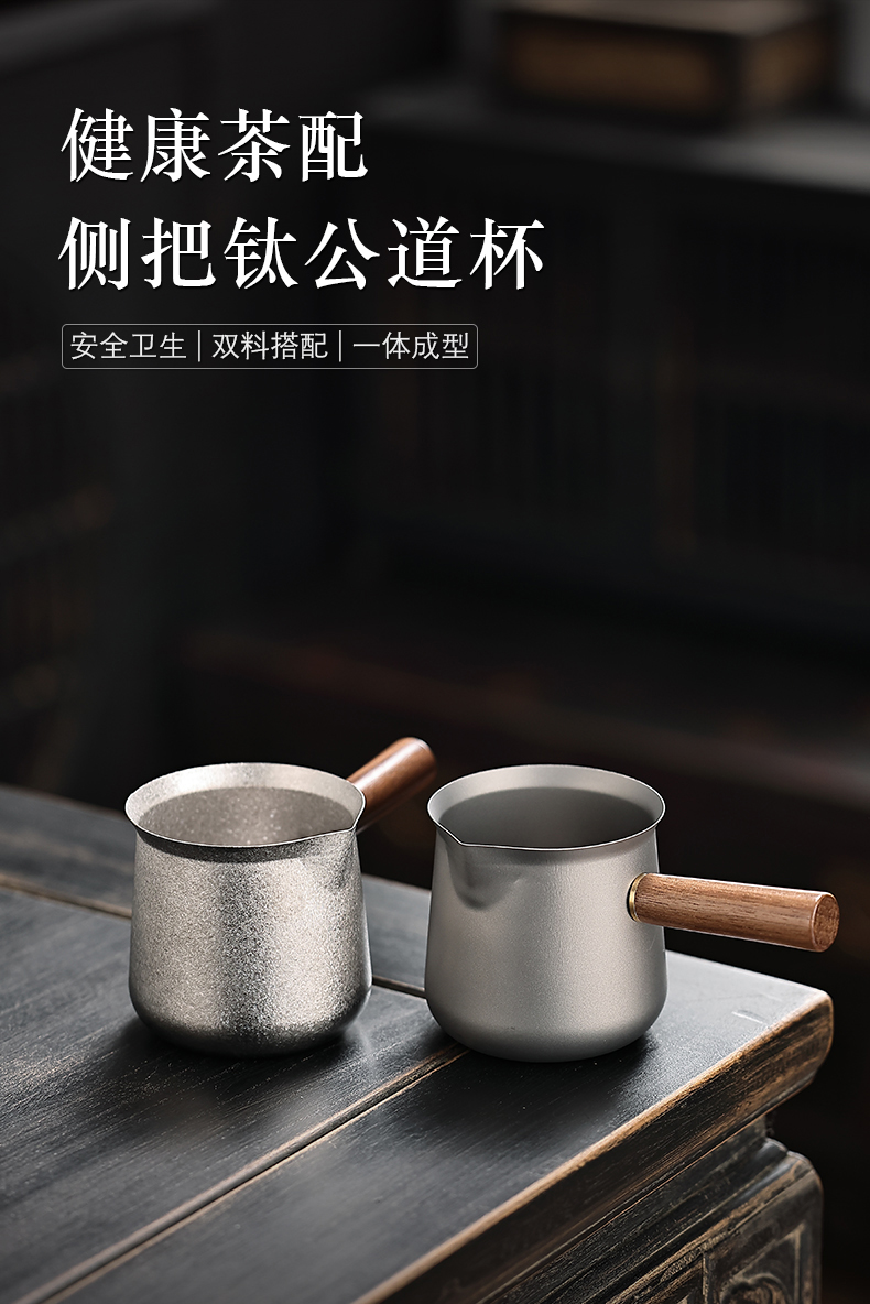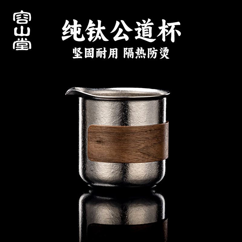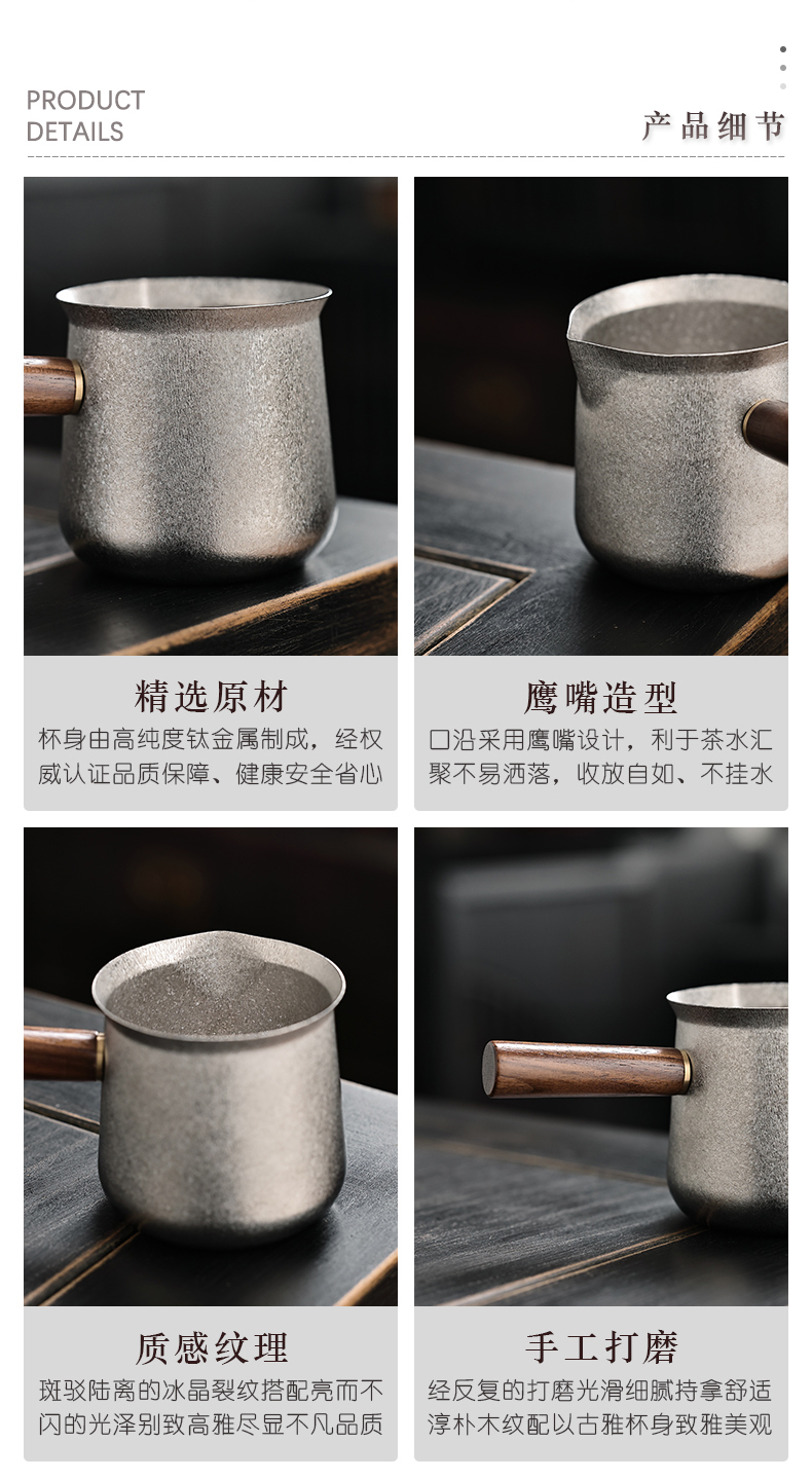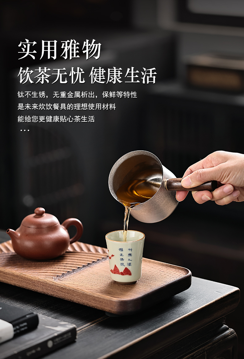 钛杯钛茶杯纯钛公道杯茶漏滤网实木侧把户外旅行茶具功夫茶具配件
