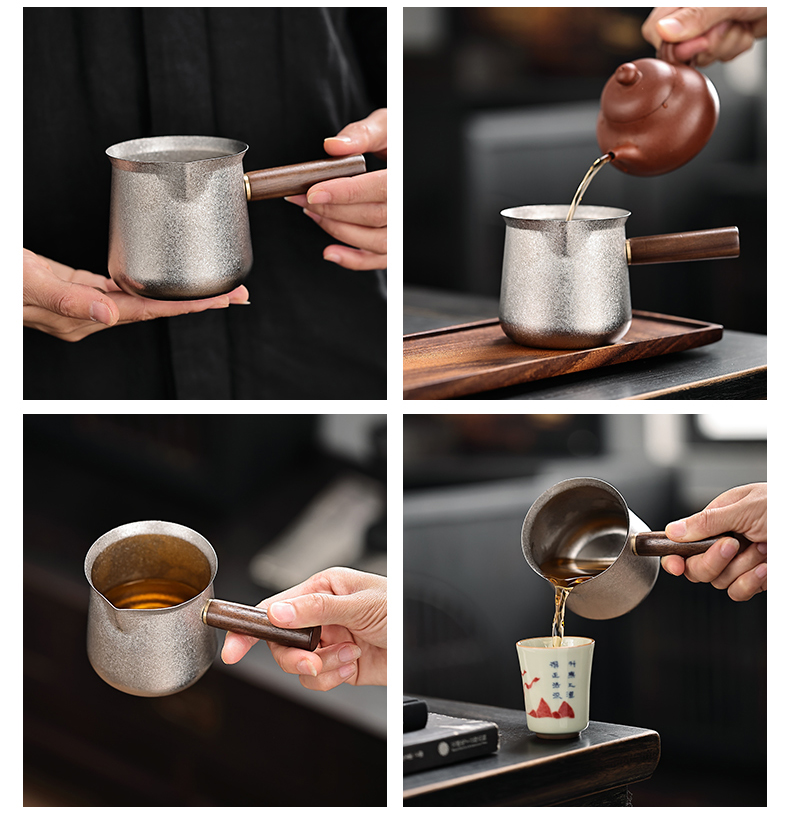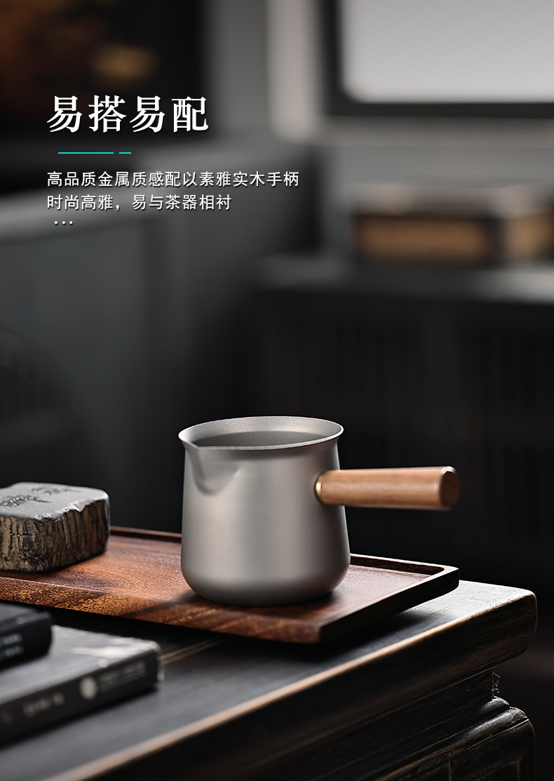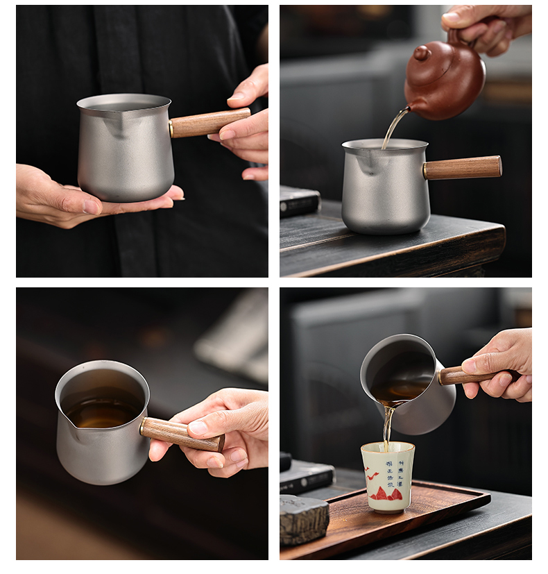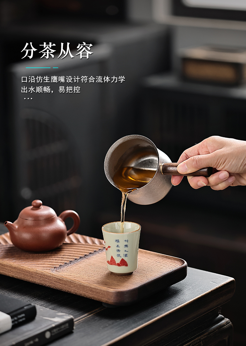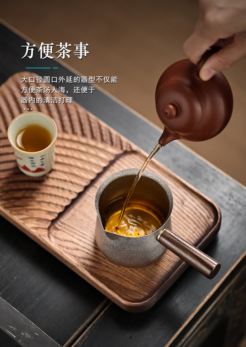钛杯钛茶杯纯钛公道杯茶漏滤网实木侧把户外旅行茶具功夫茶具配件