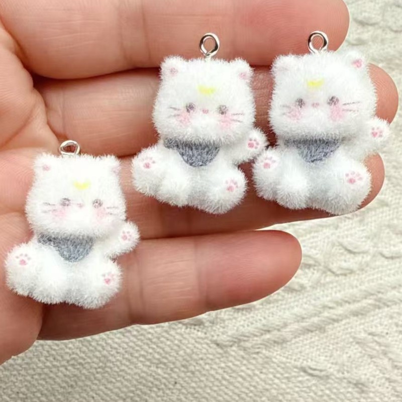植毛ラッキーキャットチャーム diy キーホルダーバッグ携帯電話車のペンダント装飾品アクセサリー材料卸売