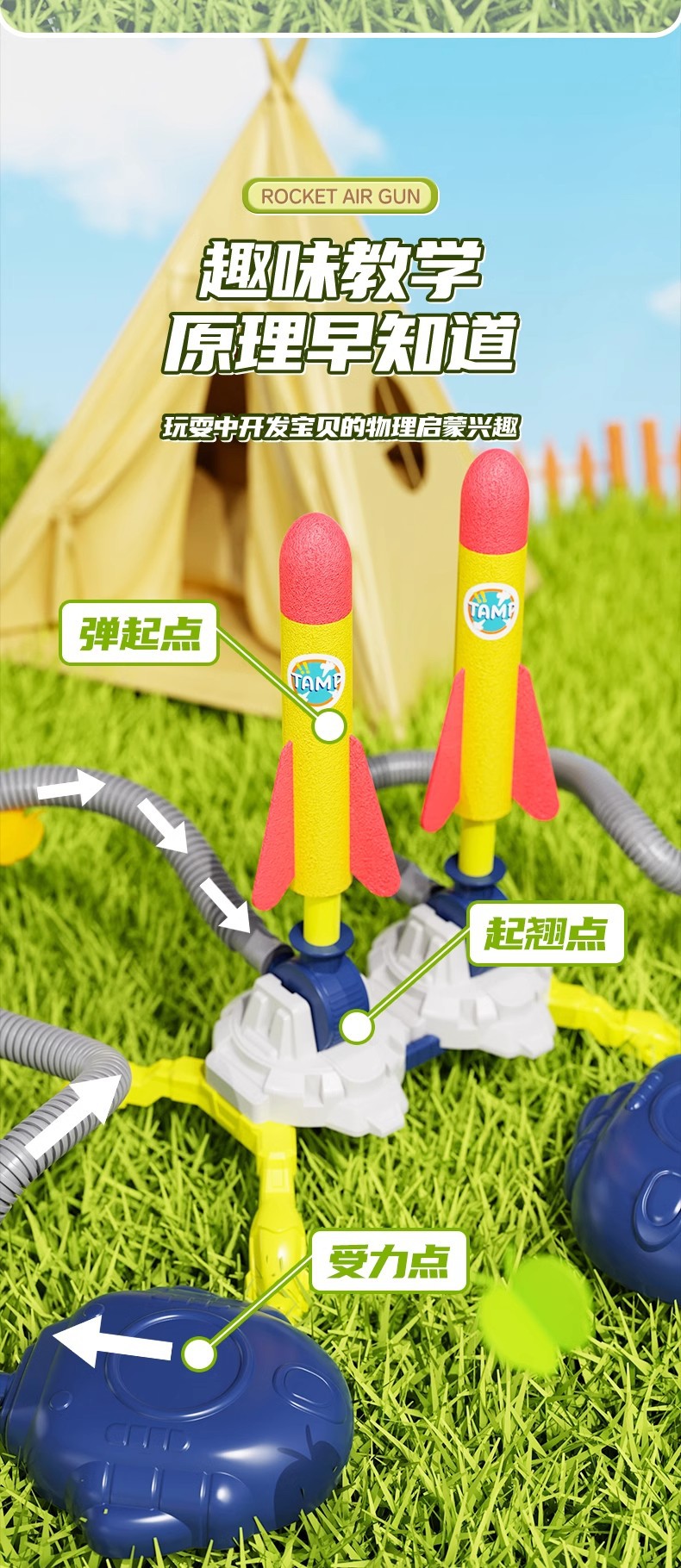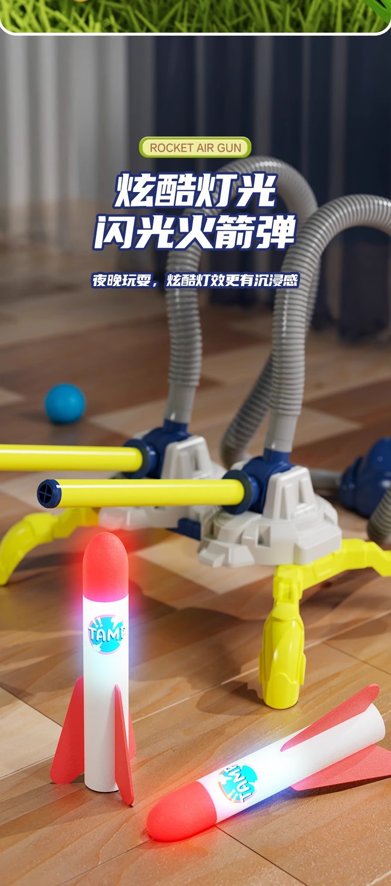子供の足は天の小さい発射筒のおもちゃを踏んで発光します。