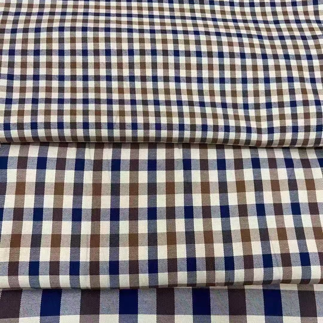既製シャツ生地裏地 CVC ポリエステル綿チェック柄シャツドレスアクセサリー先染めチェック柄生地