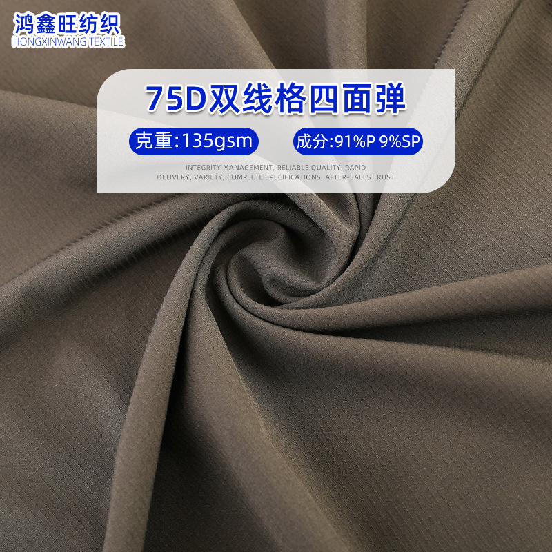 在庫あり 75D ポリエステル二重糸チェック柄四面弾性織物ストレッチ生地ジャケット四面弾性メーカー吸湿速乾