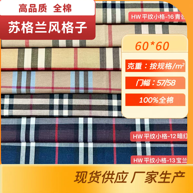 現物100% 綿100% 平紋スコットランド風中小格子シャツ生地ファッション伝統民族シャツ生地