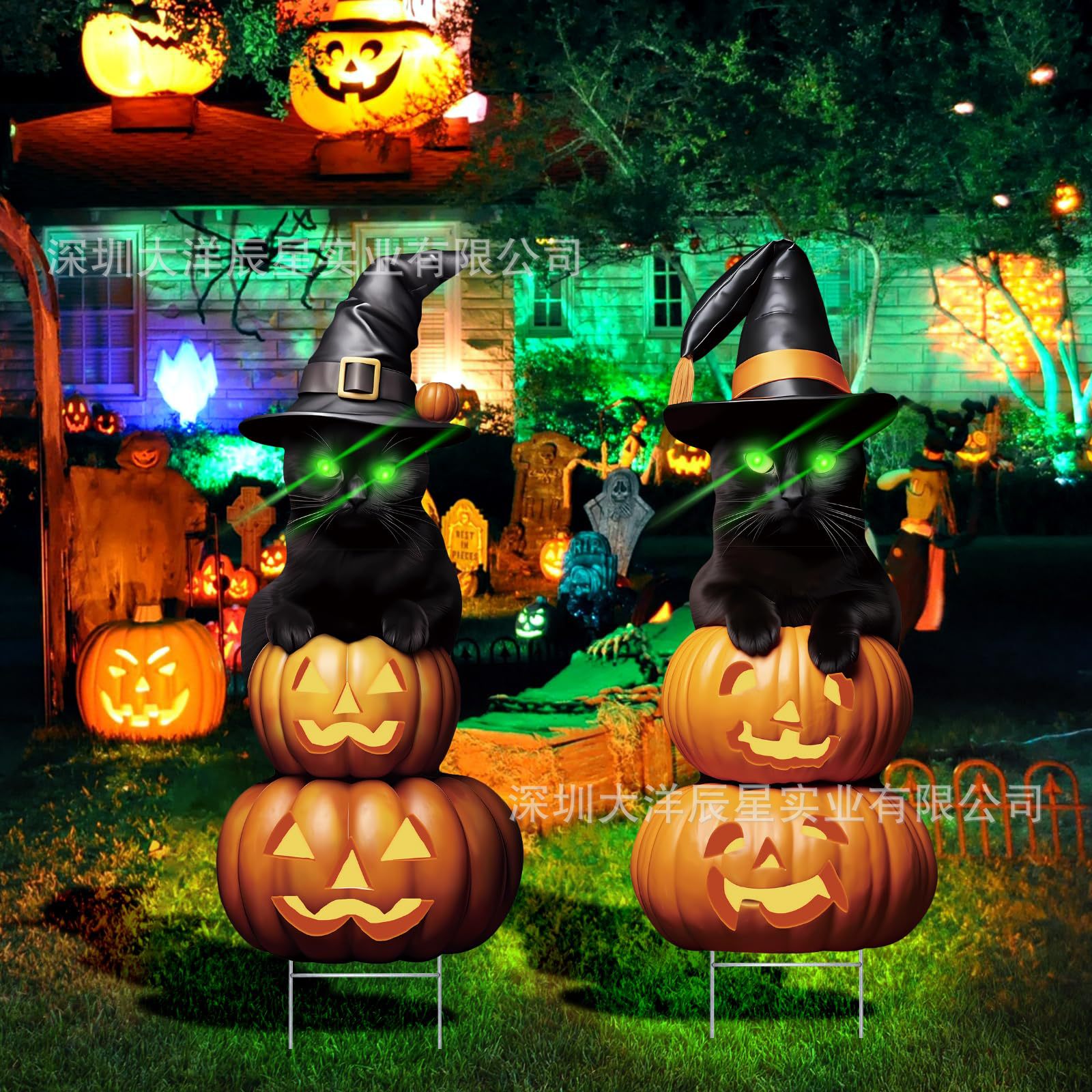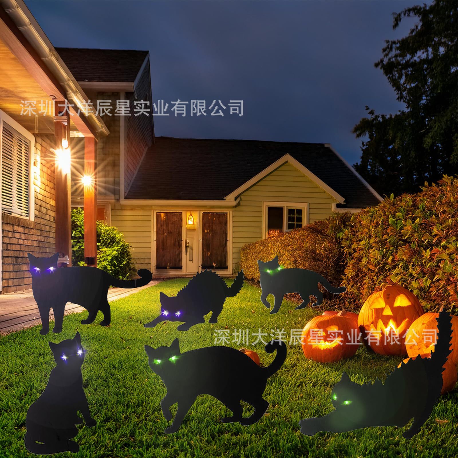 越境爆金ハロウィーン地挿し札ledランプ付き黒猫ハロウィーンパーティー庭装飾標識地挿し札