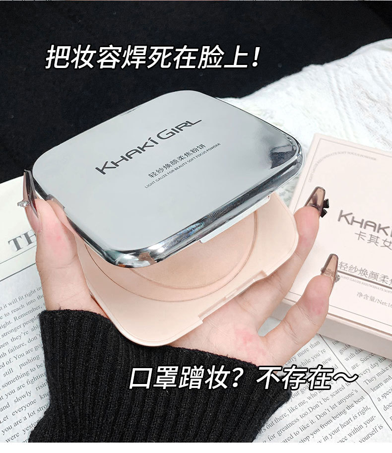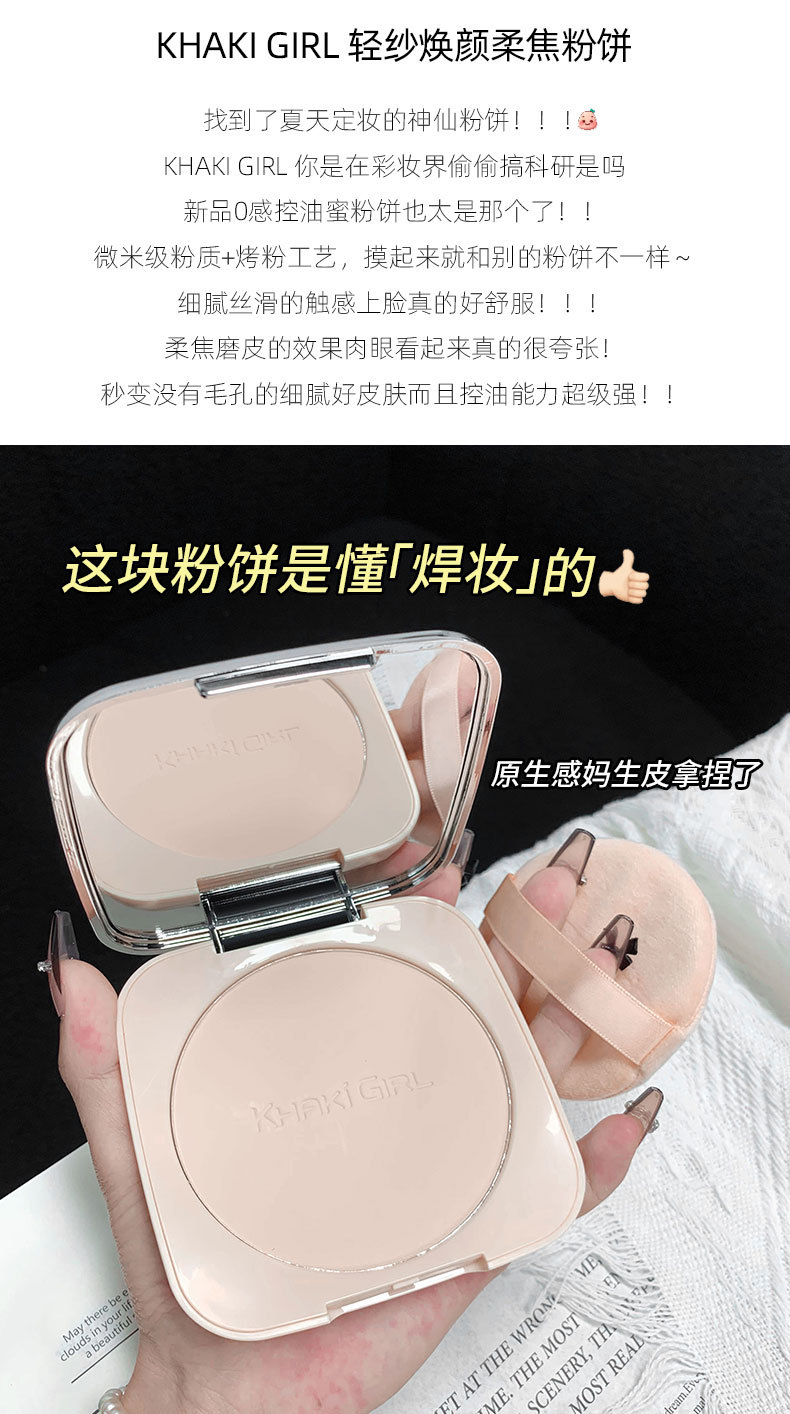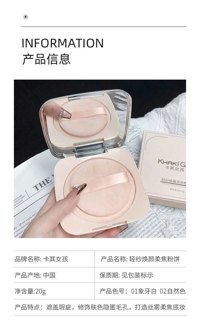 【外贸专供】卡其女孩轻纱焕颜柔焦粉饼遮瑕控油防水持久不易脱妆