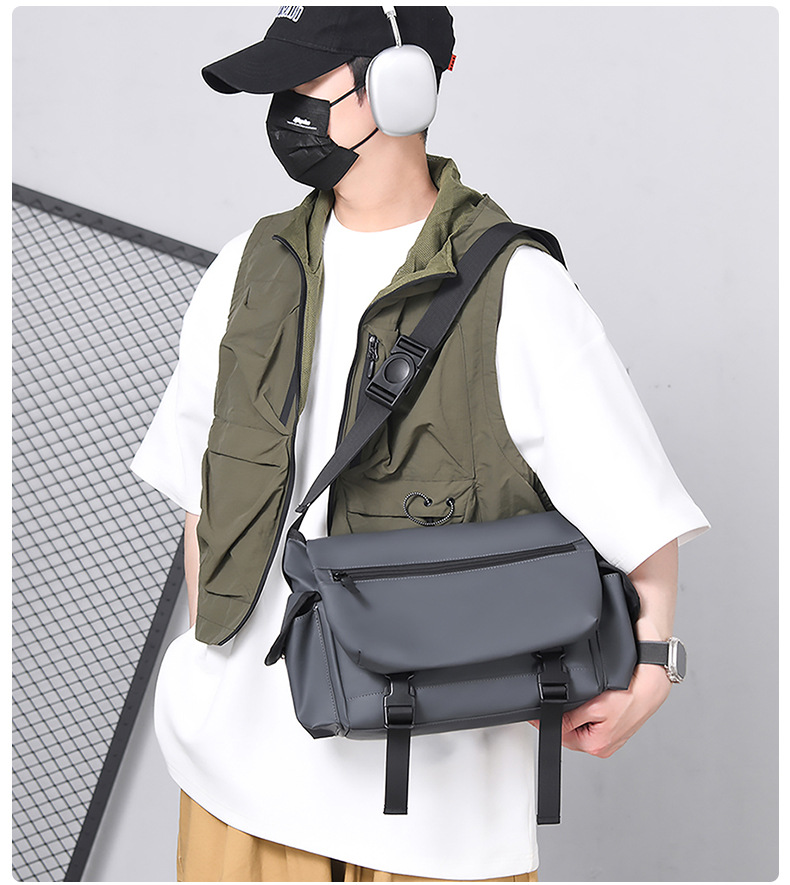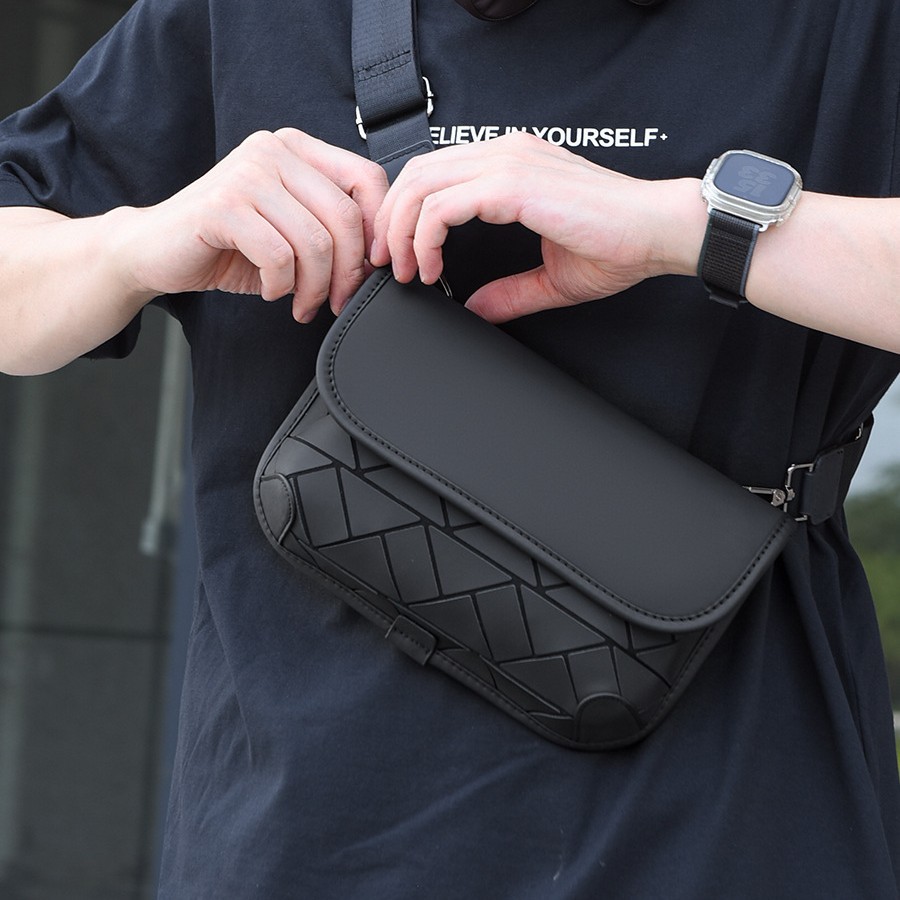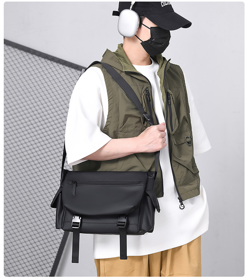 2025年新作メンズ斜め掛けバッグ、トレンドブランド、日本風ストリートファッション、メンズバッグ、カジュアルで質感のあるスポーツスタイルのレザーバッグ