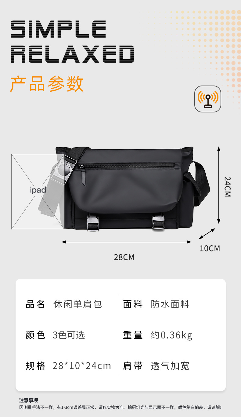 大容量休闲旅游水壶包时尚外出斜挎包户外运动单肩包简约潮男胸包