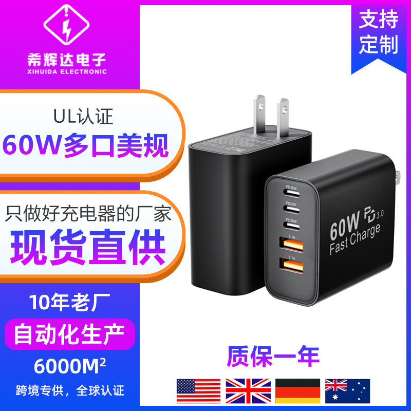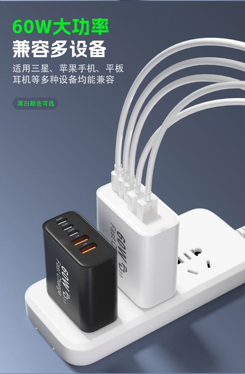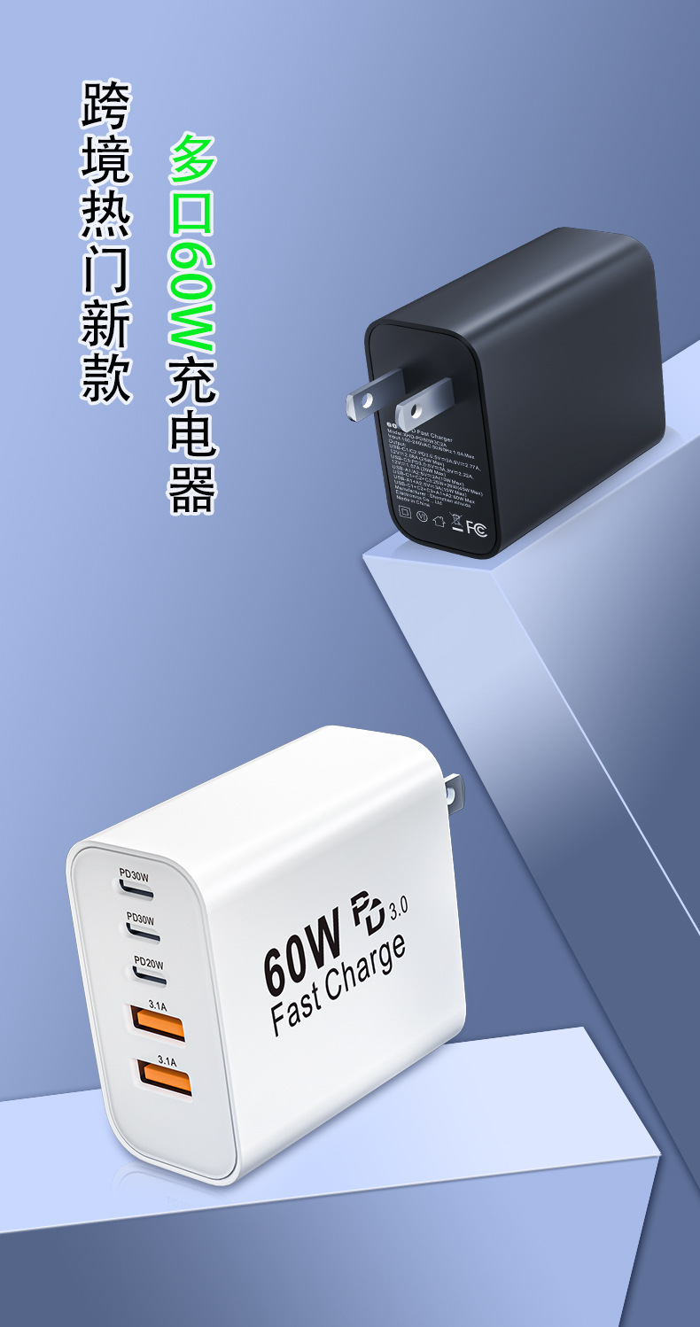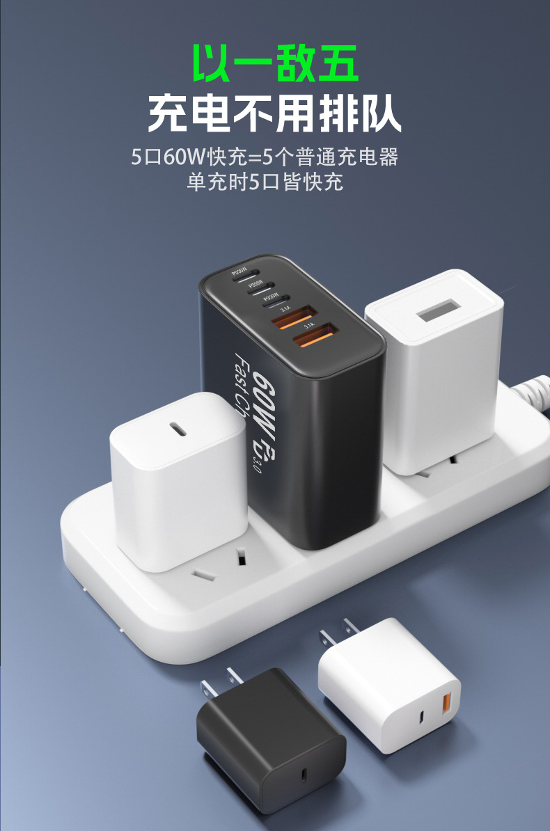 米標ul認証充電器PD60W急速充電はサムスンアップル30W充電ヘッド多口アダプタ源を適用する