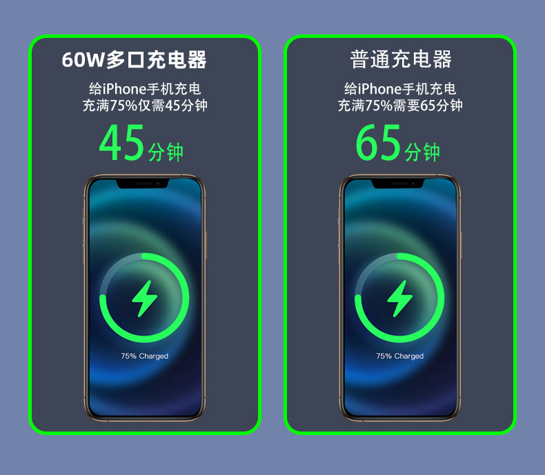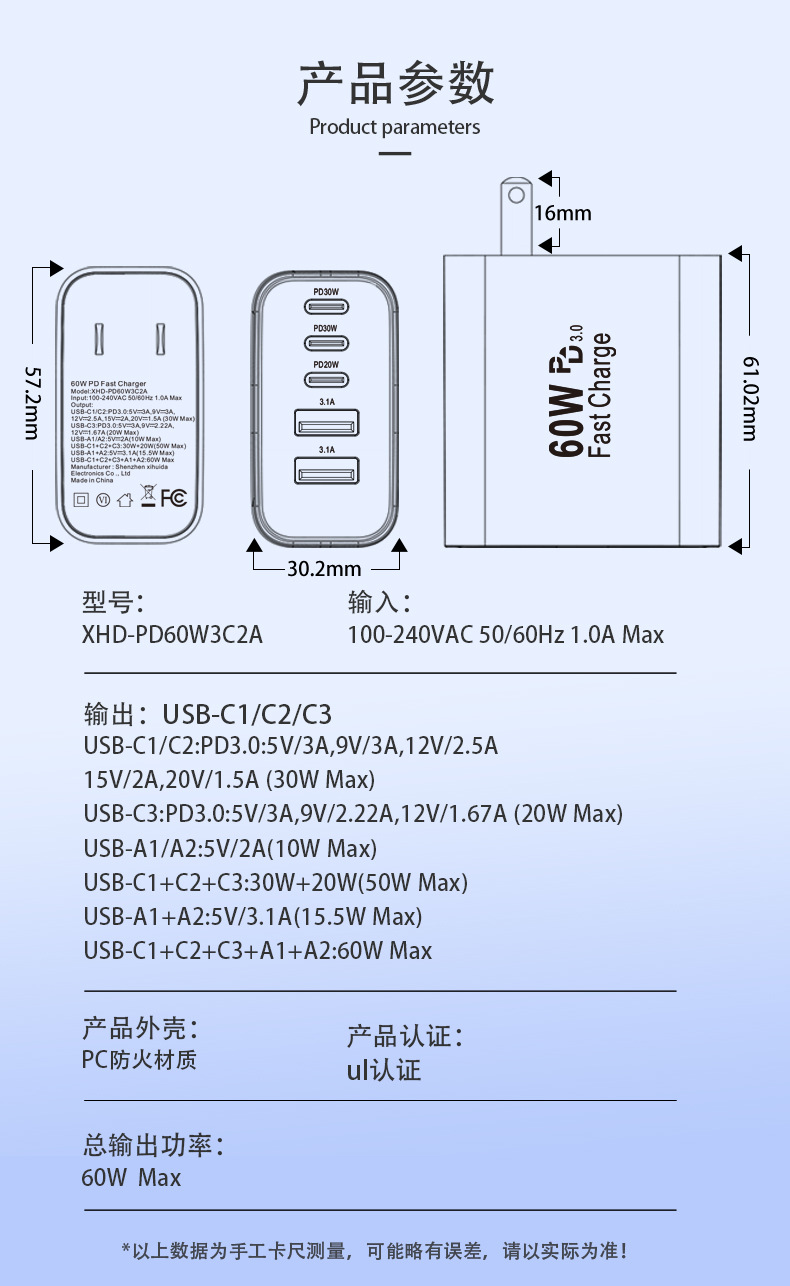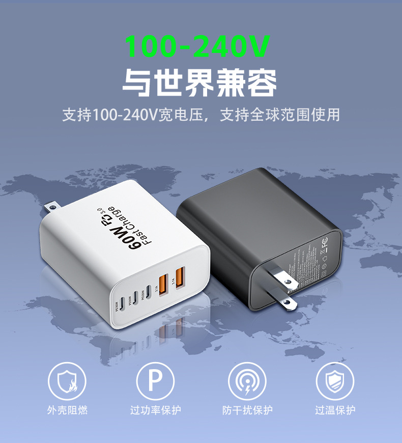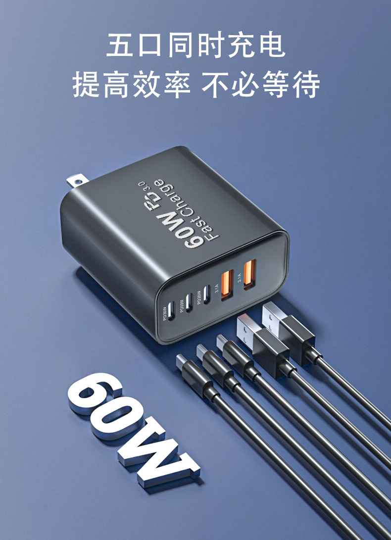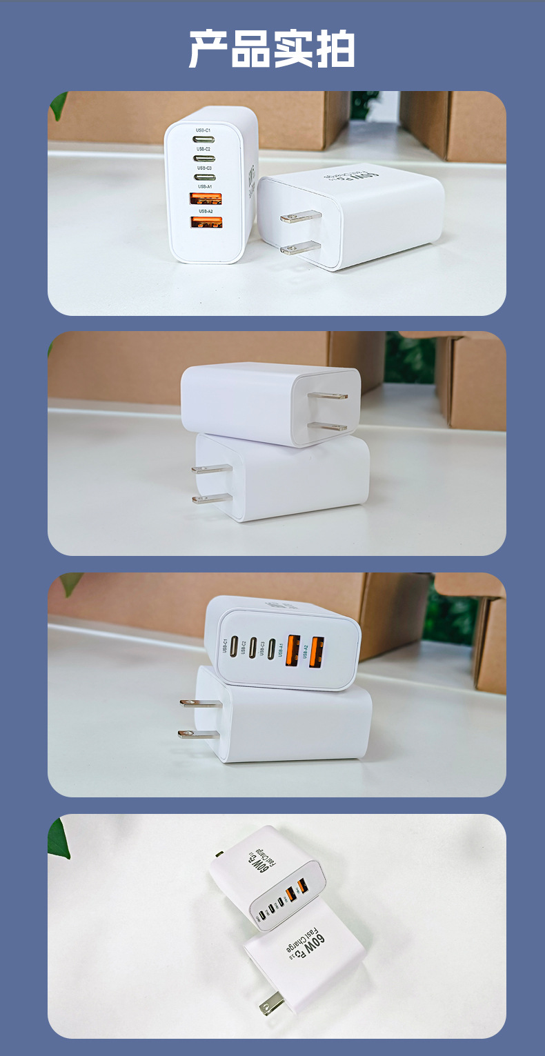 米標ul認証充電器PD60W急速充電はサムスンアップル30W充電ヘッド多口アダプタ源を適用する