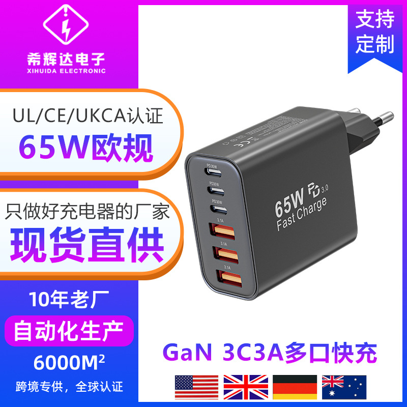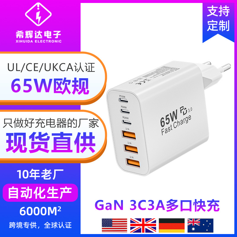 新款PD65w欧规充电器适用苹果13Promax三星充电头3C3A多口充电器
