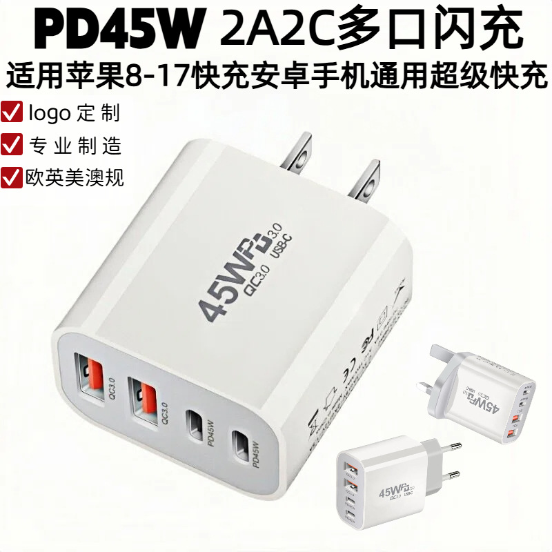 跨境PD45W氮化镓闪充2A2C多口快充充电头适用于苹果17手机充电器