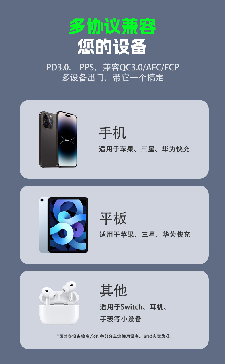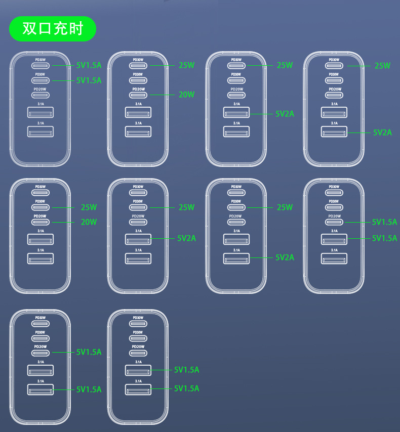 PD100W充电器ハイパワーデスクトップ充电携帯电话タブレットノートブック窒化ガリウムusbマルチポート急速充电UL认识
