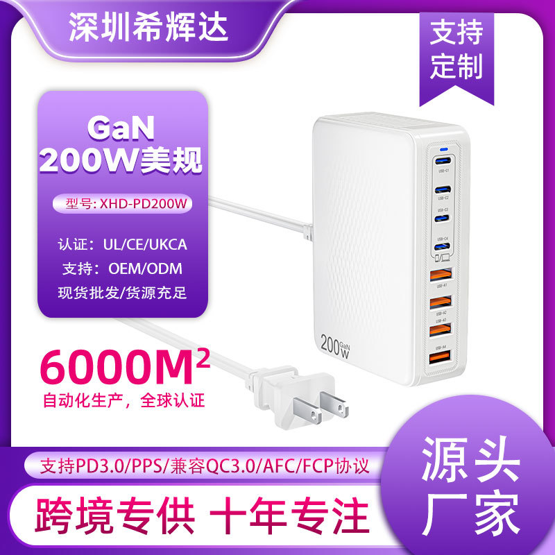 国境を越えた新型窒化ガリウム200Wマルチポート充電器は、Apple 16、Huawei、Samsungのタブレットの急速充電に適しています。