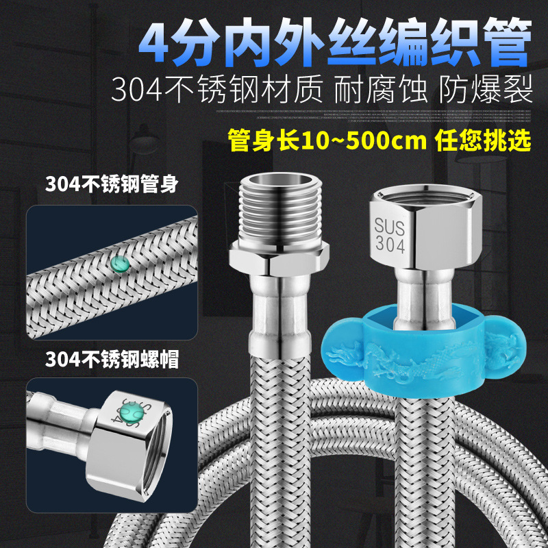 4分内外糸延長管304ステンレス編組冷熱給水延長管家庭用管高圧防爆ホース