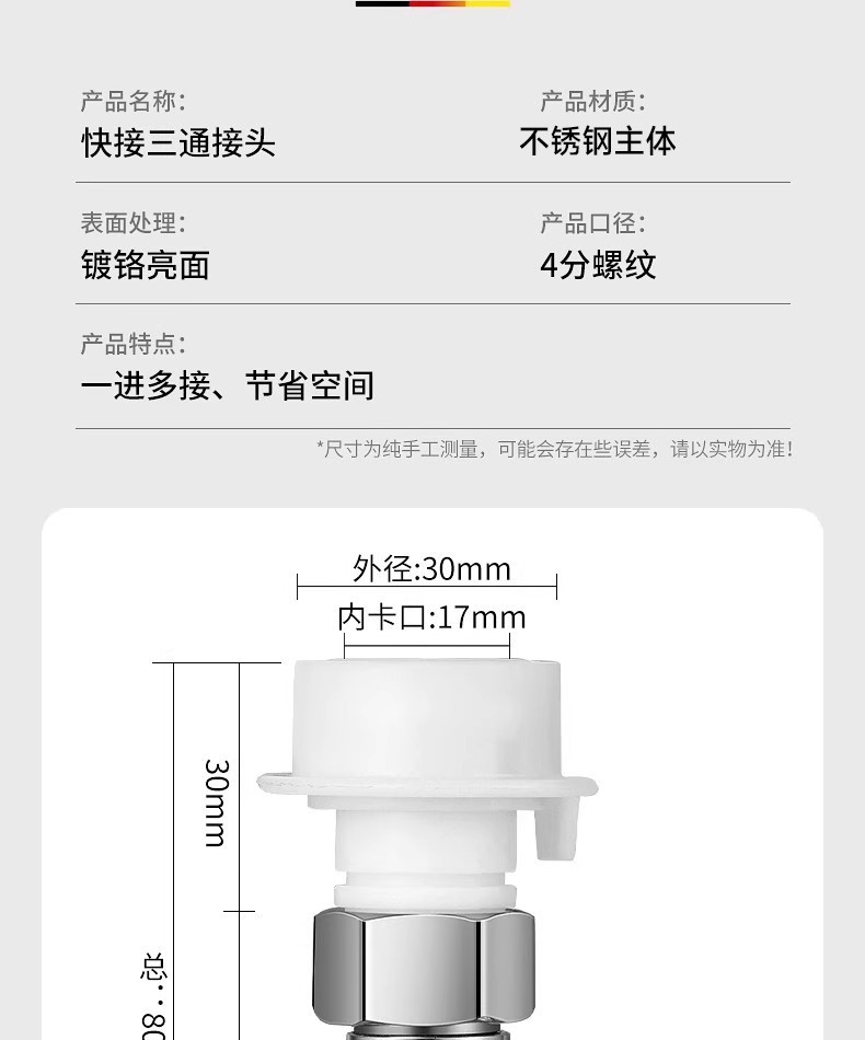 ステンレス三方活接4分内外管便器分水継手水道管配管部品