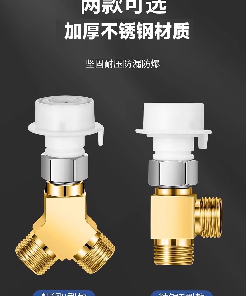 304ステンレスダブルコントロール角弁一進二出三方分水弁蛇口一分二分水器スイッチ付き