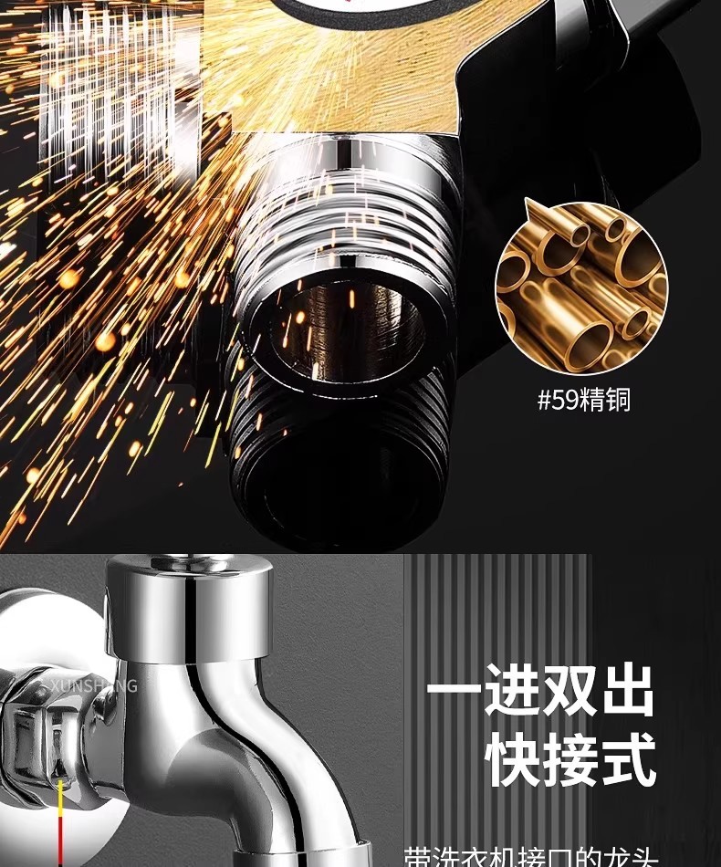 トイレ壁式蛇口全銅延長モッププール洗面所黒色洗面器4分単冷快開