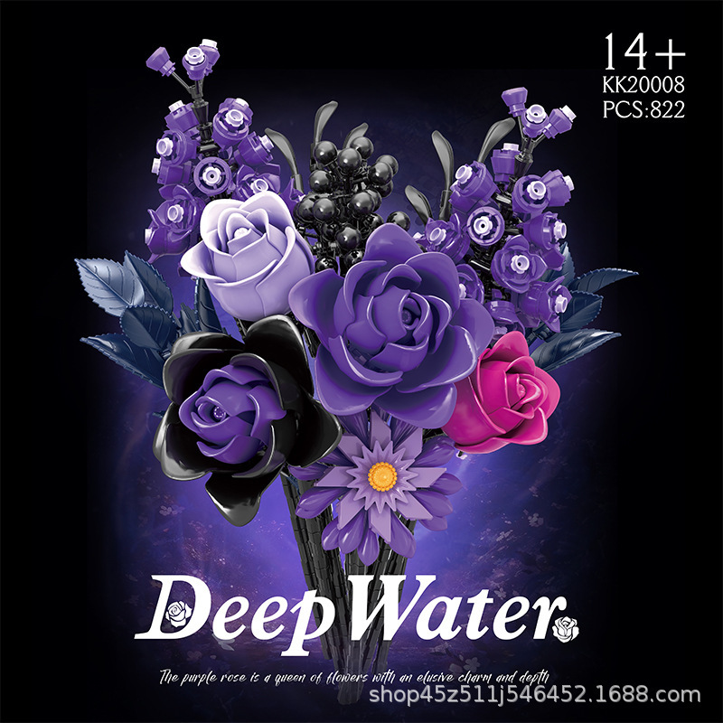跨境爆款KK20008紫玫絮语花束永生花diy拼装积木玩具女孩摆件礼物