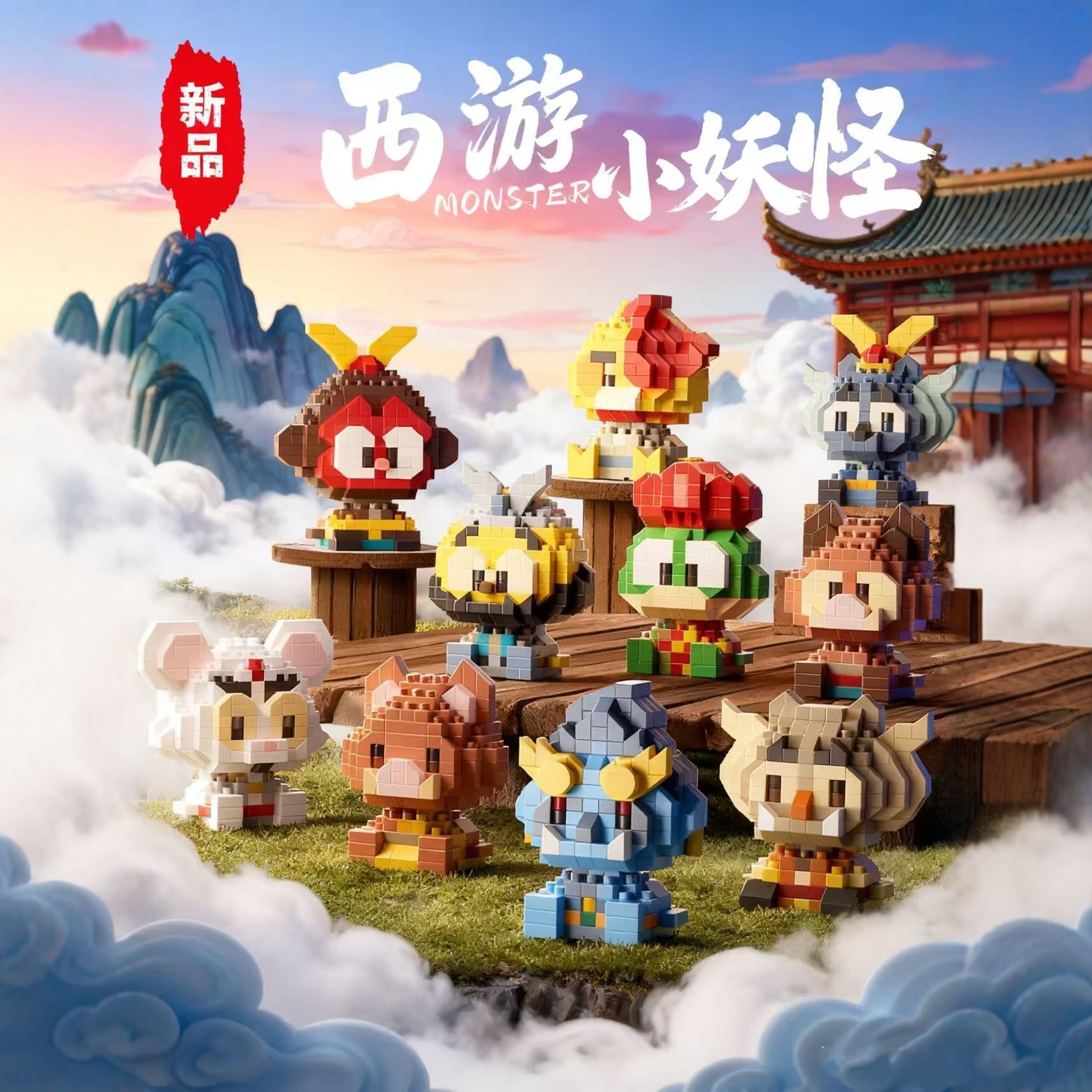 厂家批发nlnm浪浪山小妖怪积木拼装微颗粒儿童玩具卡通兼容乐高
