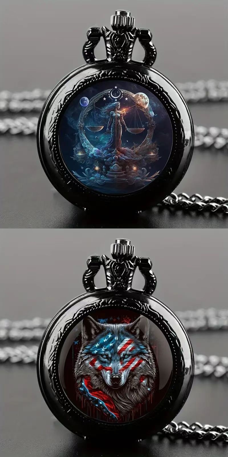 クロスボーダーホットセールカラフルなパターン中型懐中時計レトロフリップ装飾ネックレス時計パーソナライズされたトレンディな男性と女性の学生石