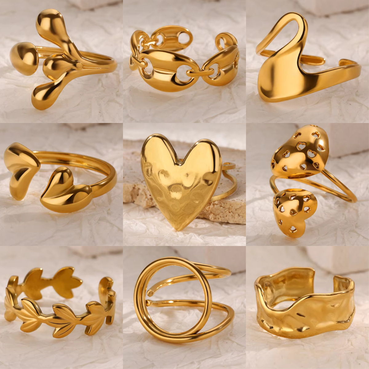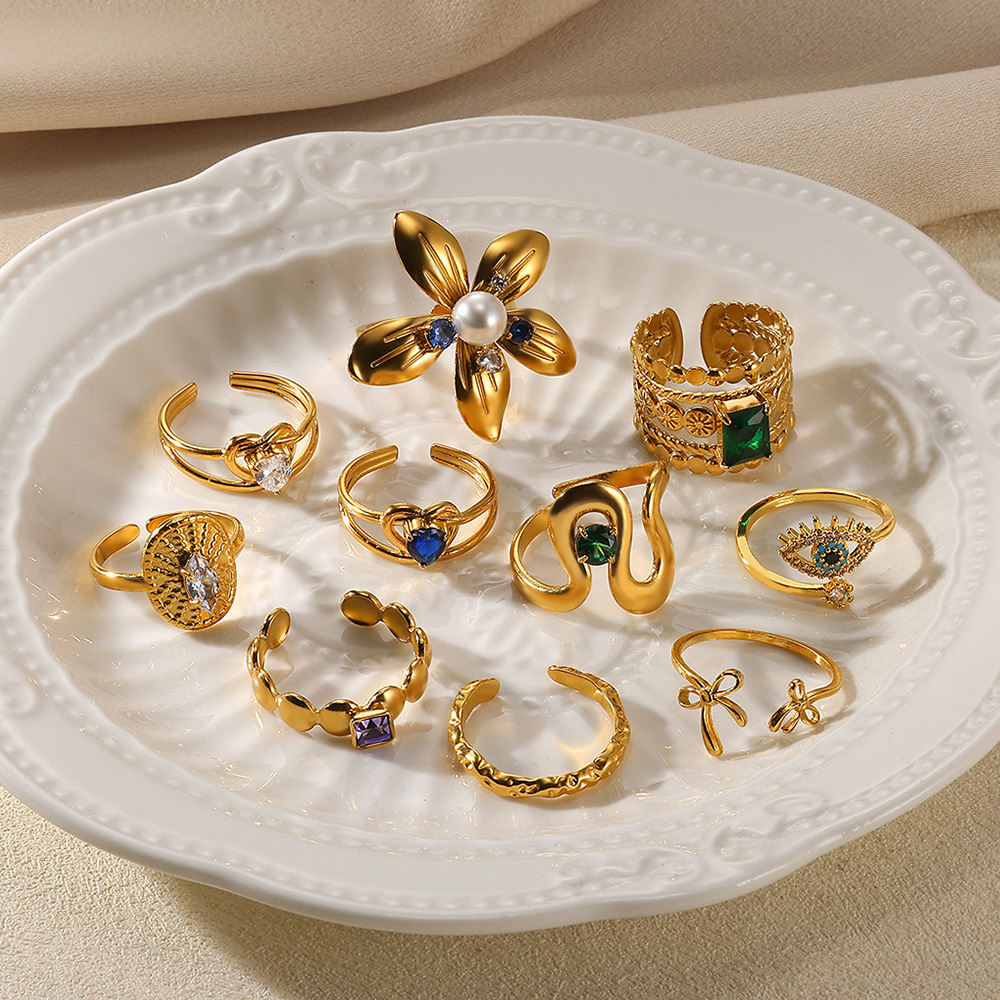 天然石ステンレスリングメッキ18kゴールド活口小衆高級感レディース高級感チタン鋼レトロins卸