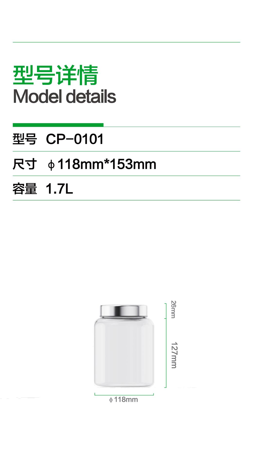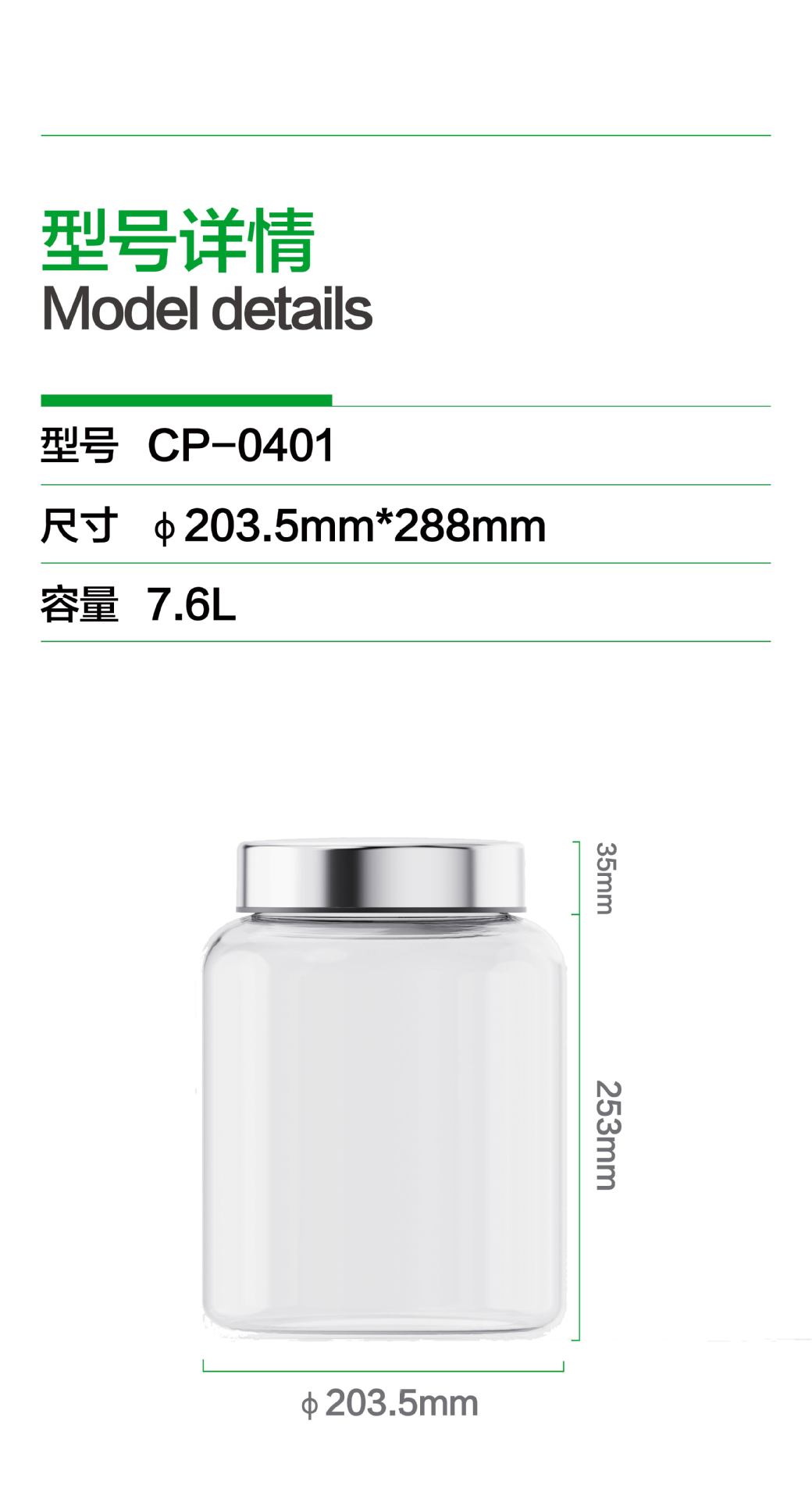 仕様とモデル CP-01(φ118×153mm);透明,CP-02(φ128×173mm);透明,CP-03(φ147×214mm);透明,CP-04(φ203.5×288mm);透明