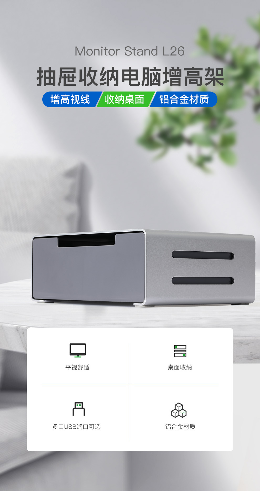 iDock モニター スタンド ベース 高さ調整 アルミ合金製スタンド 引き出し収納 L26