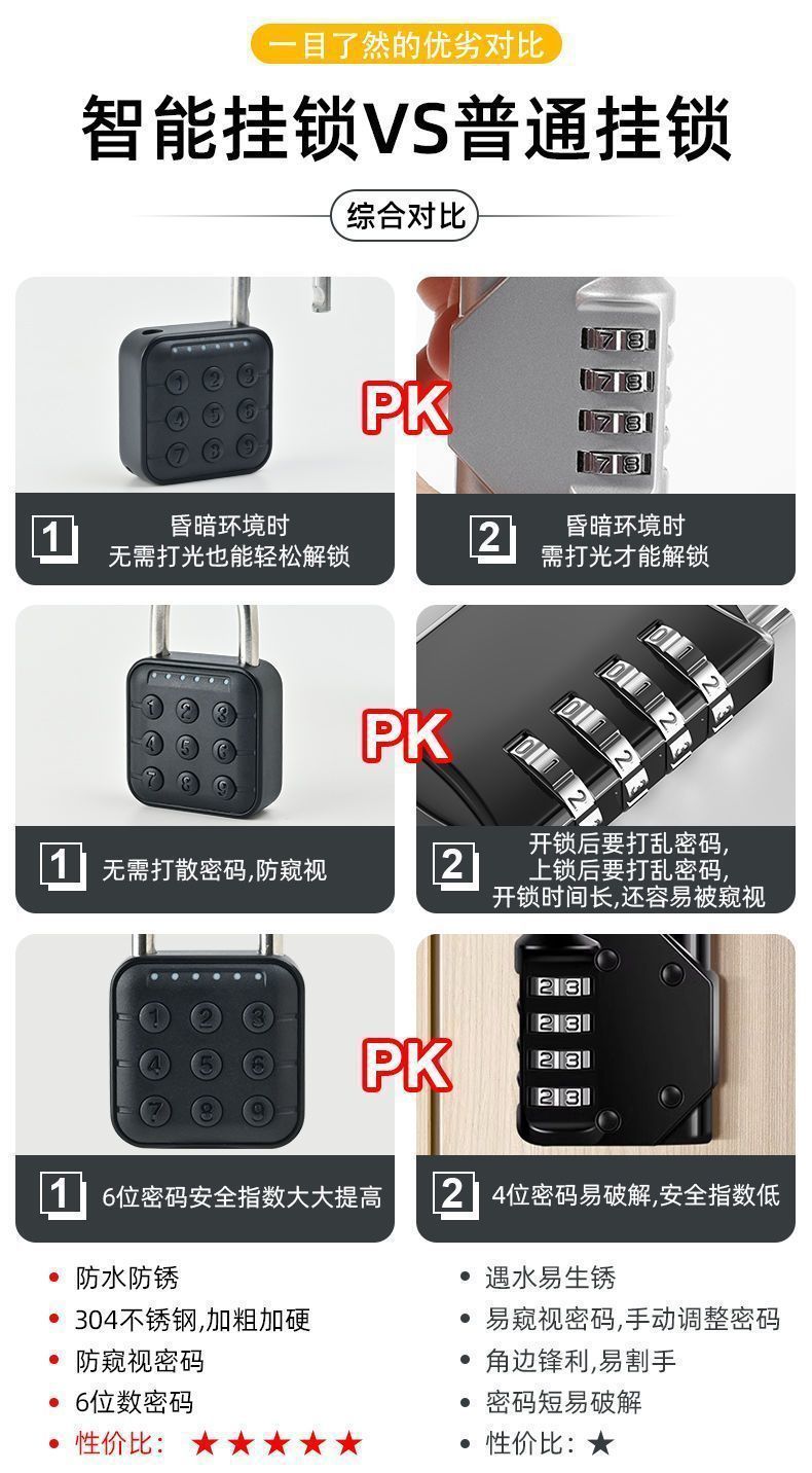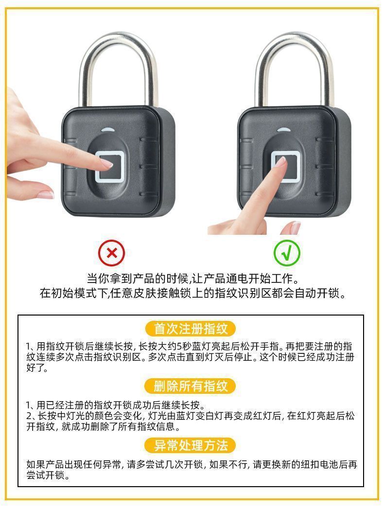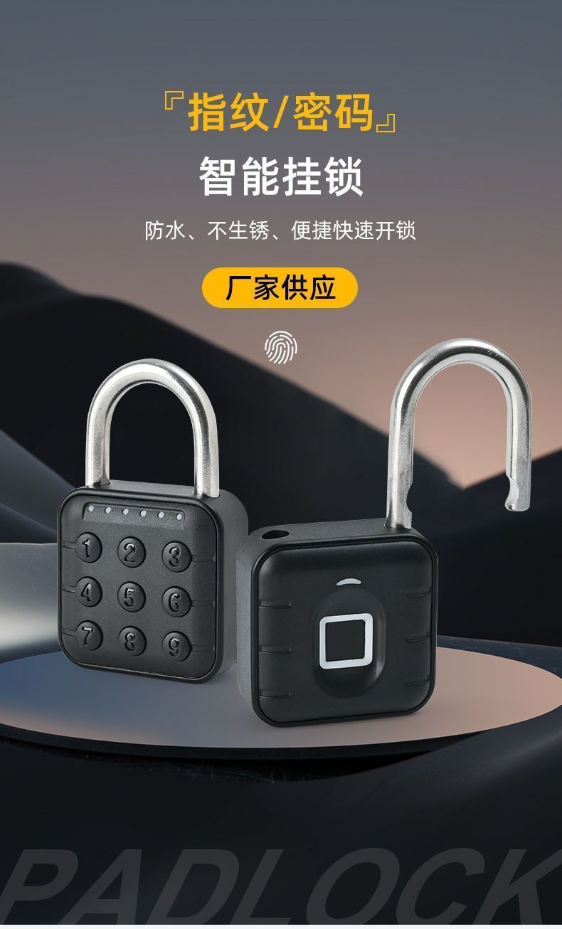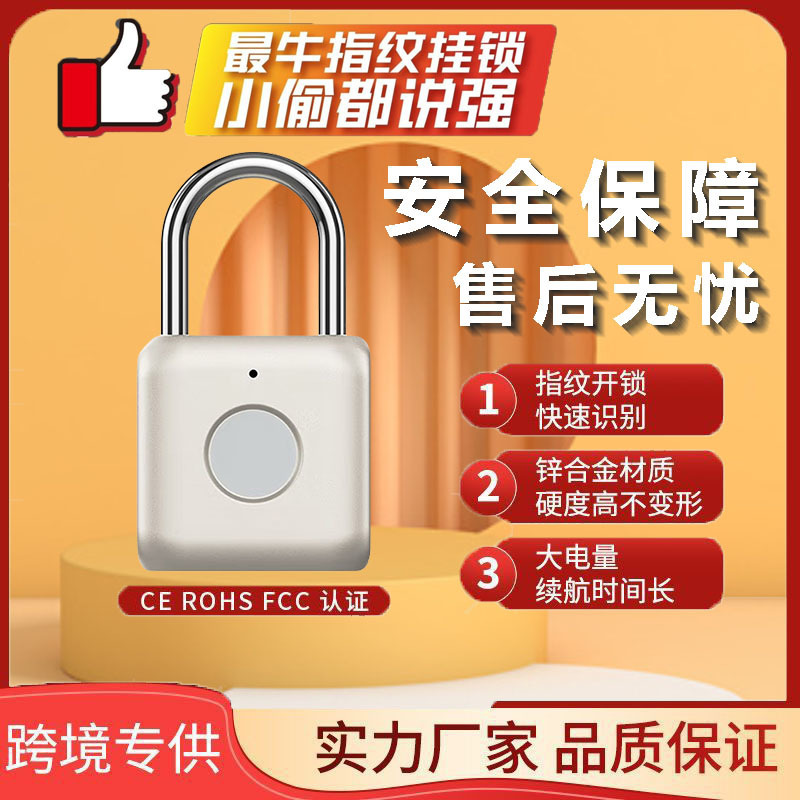 スマート指紋南京錠屋外防錆南京錠スマート電子南京錠ヘッドドア盗難防止パスワードロック南京錠クロスボーダー