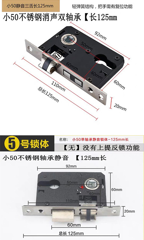 室内共通型木戸ロック体小50大50大58大家庭用寝室静音ロックステンレスロック体ロック芯
