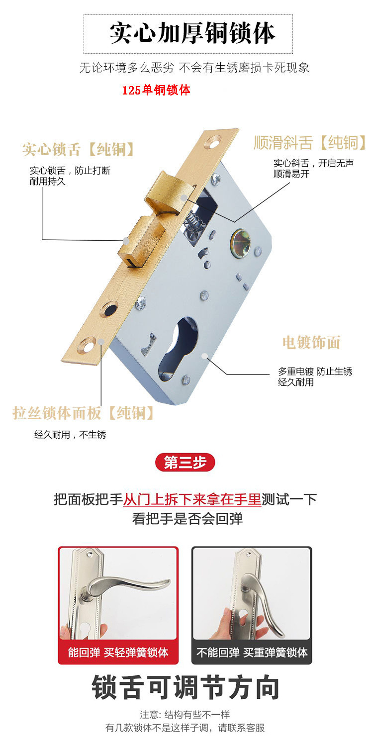 ドアロック体寝室ドア汎用型ロックコア木門部品ロック舌小50大50銅ロック軸受ロック体