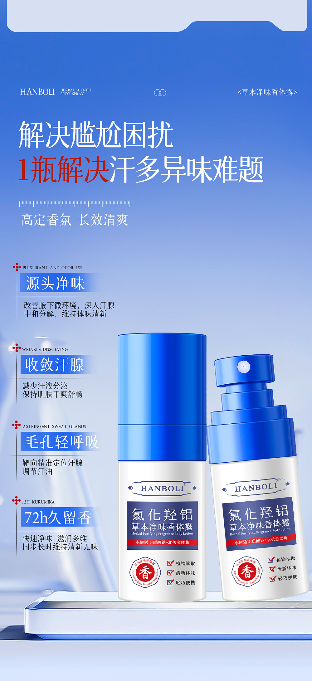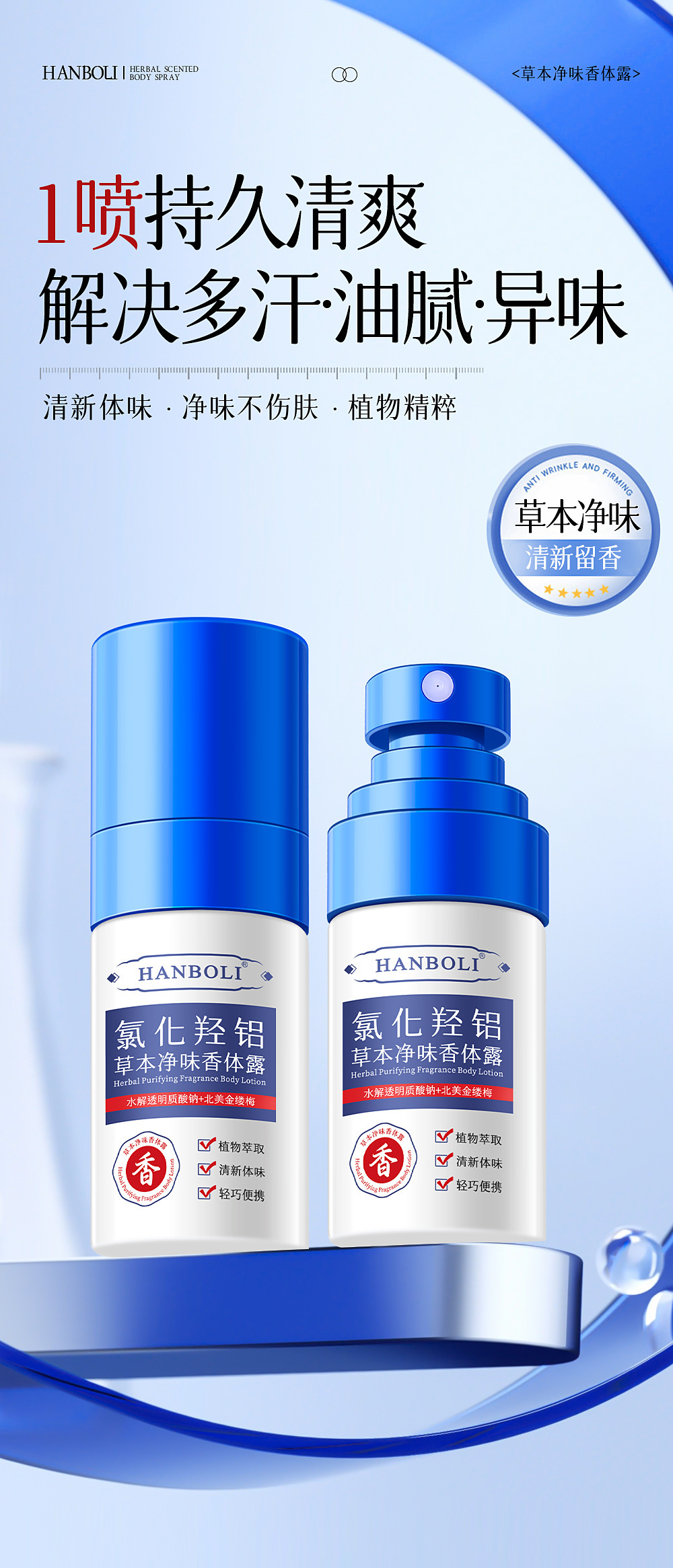 韩泊莉氯化羟铝草本净味香体露改善异味清新干爽留香男女一件代发