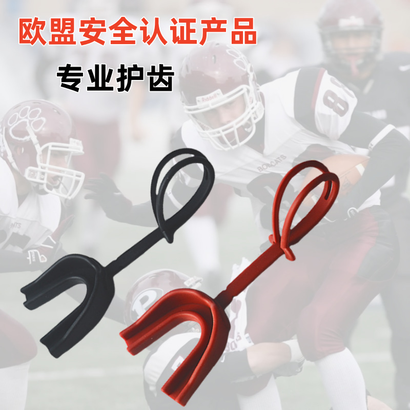 热销亚马逊橄榄球运动护齿牙套护唇热塑定型防冲击牙套栓带式牙套