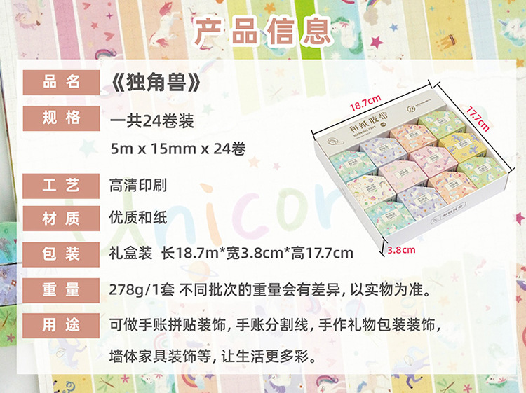Amazon ソースユニコーン和紙テープ 24 ロール子供の漫画カラー diy ハンドブック装飾クロスボーダー卸売