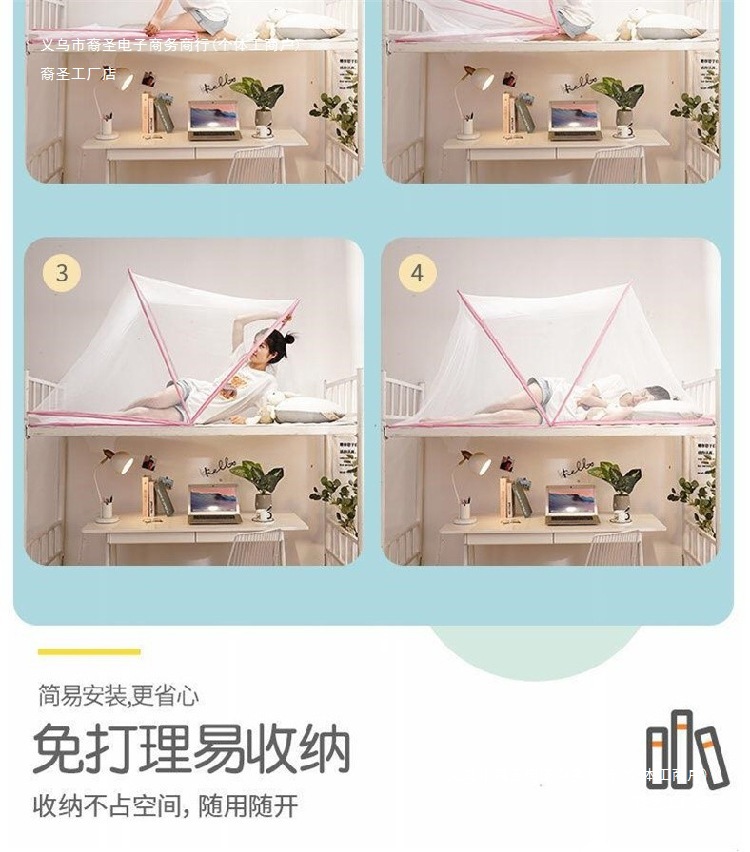 折りたたみ式蚊帳、ポータブル学生寮の二段ベッド、2025年の新しいシンプルな暗号化家庭用取り付け不要のベッドカーテン