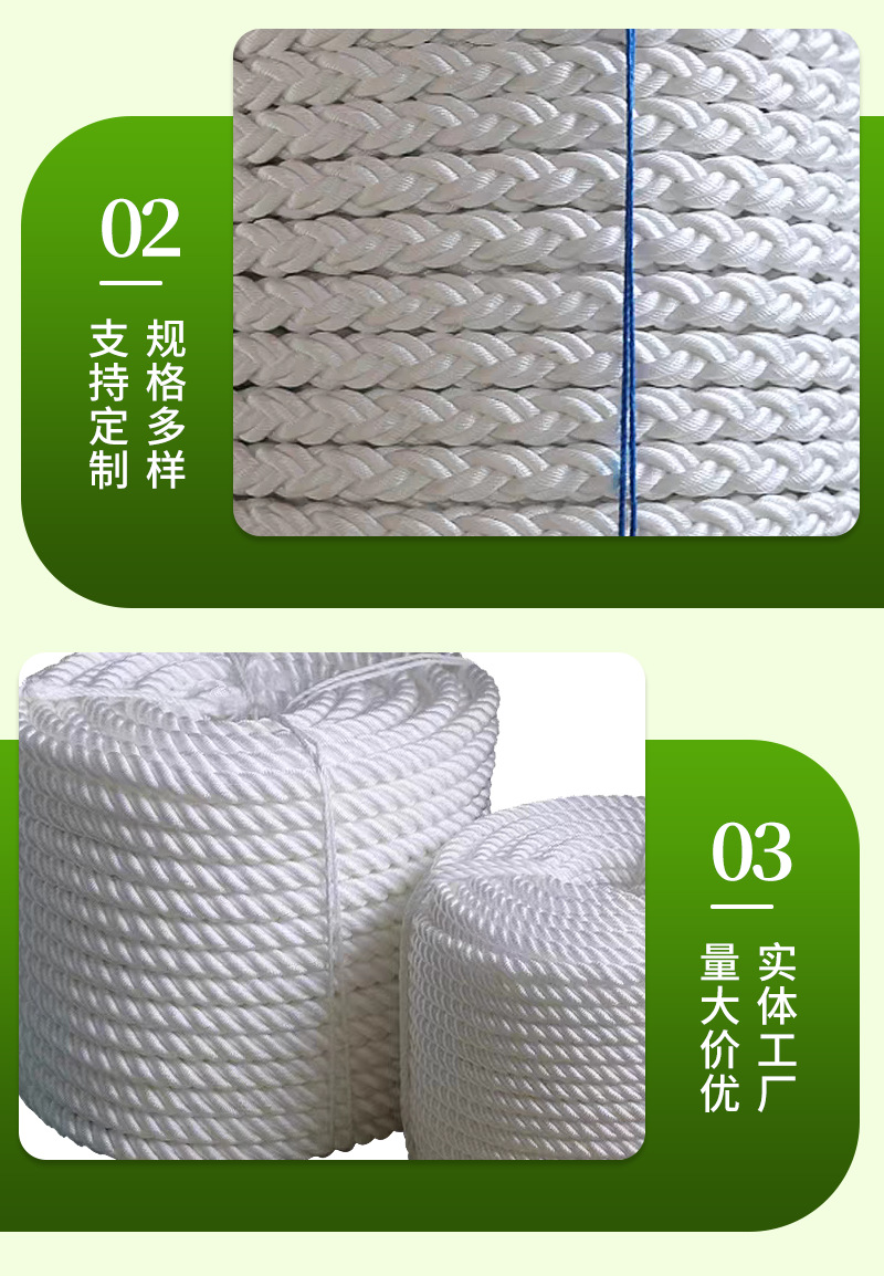 ナイロンケーブル、卸売、八股麻ひも、十二股アンカーロープ、複合ポリプロピレンポリエステル糸、船舶用ケーブルの製造