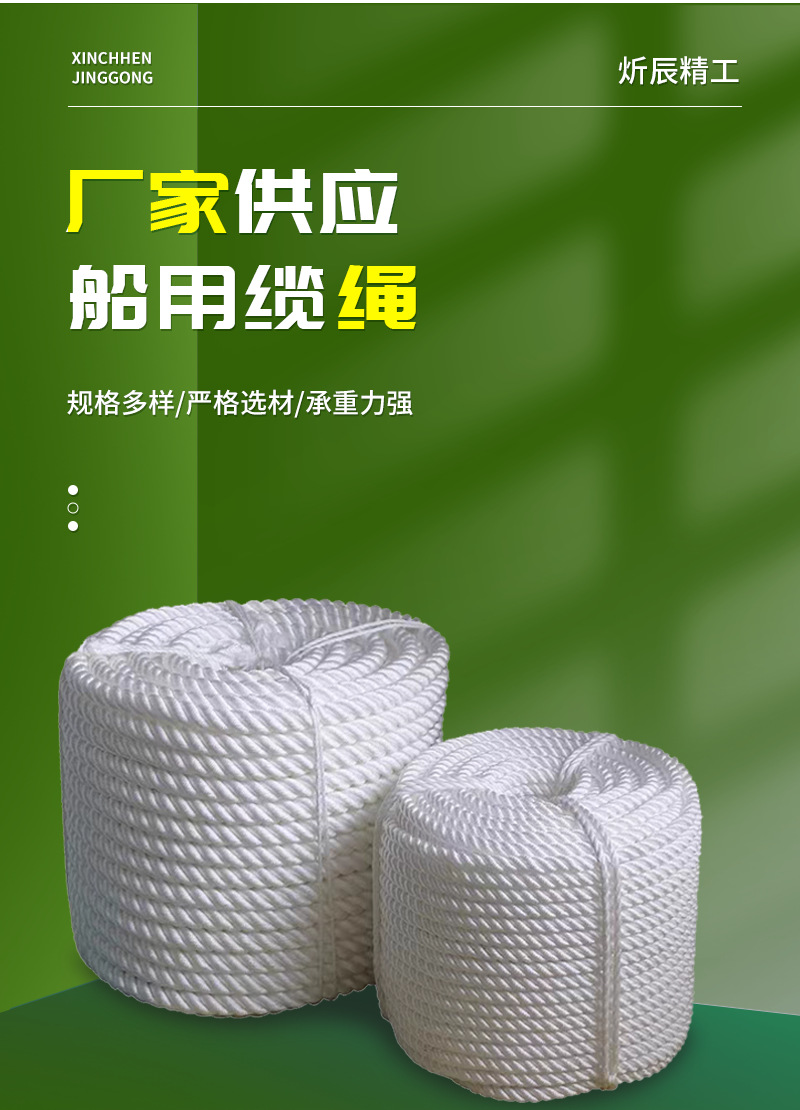 船用缆绳 三股编织涤纶绳锚绳漂浮拖拽绳高强度船舶牵引安全绳