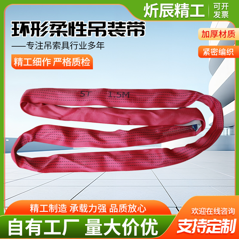 クレーン双ボタン吊り下げベルトポリエステル両端ボタン1-50トンフレキシブルストラップカラーフレキシブル環状吊り下げベルト
