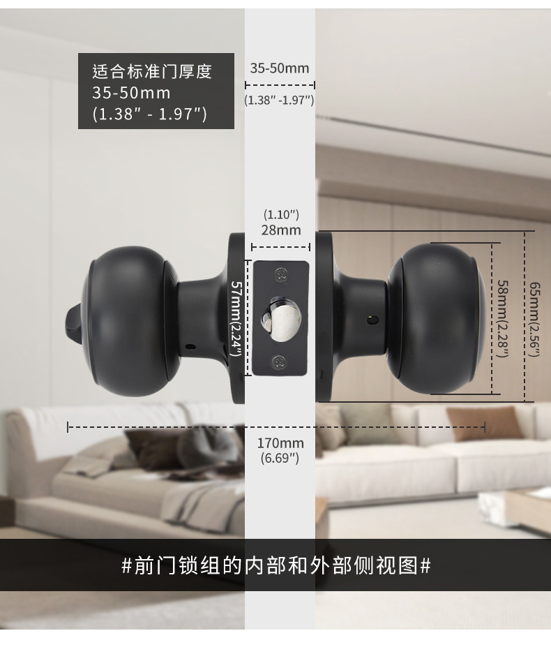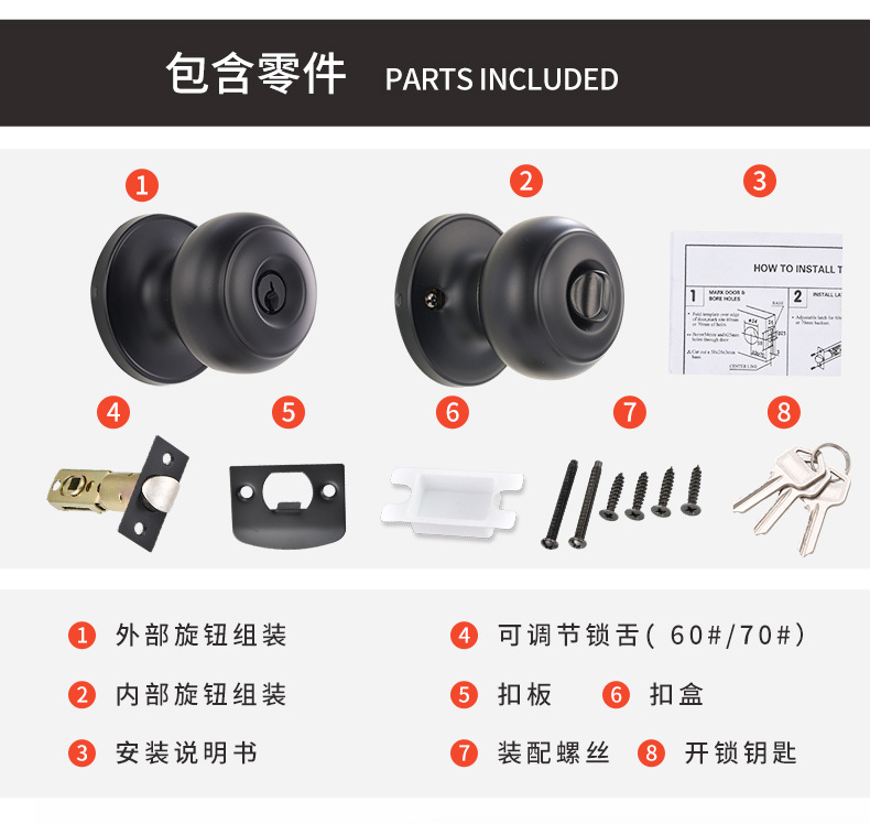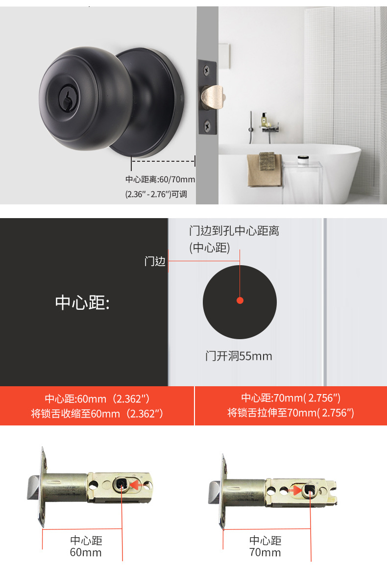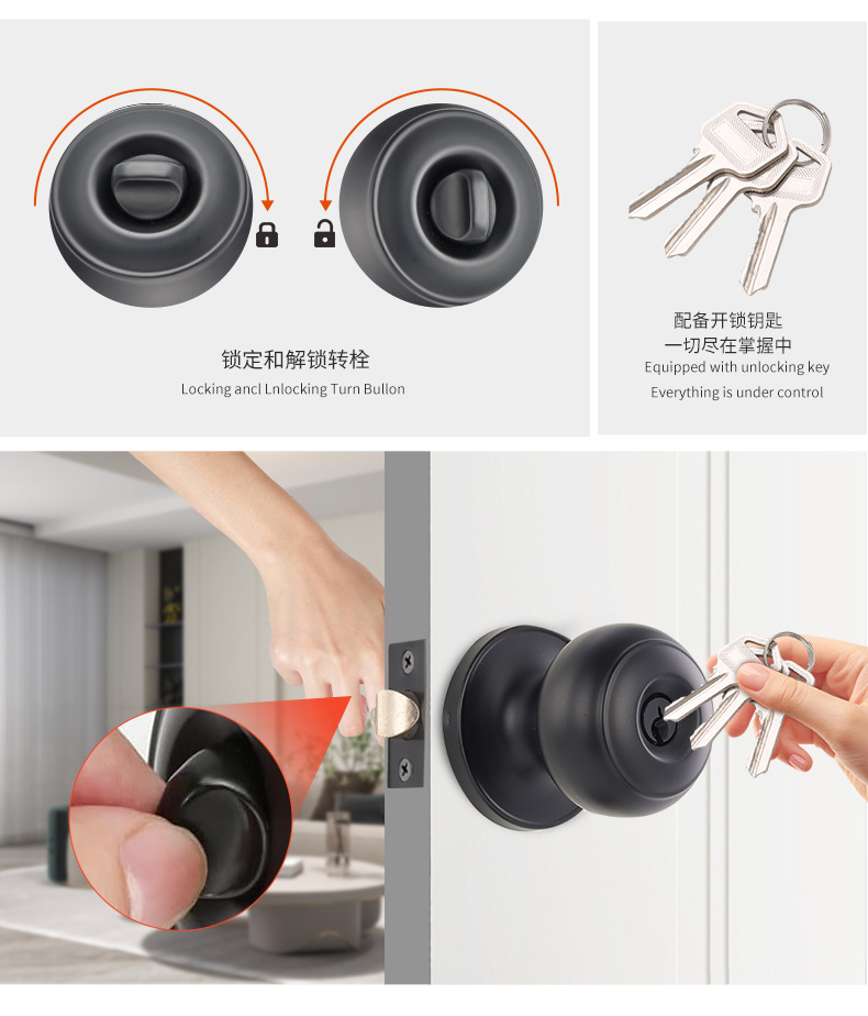 メーカー直販607MB-BK球形ロックステンレス通路寝室ドアロックトイレ球型ロック芯