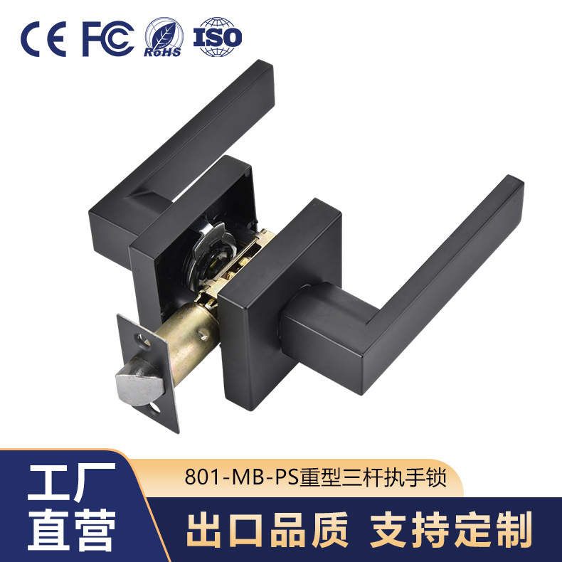 室内门锁铝合金执手锁8801可调木门把手锁方形简约美式重型三杆锁