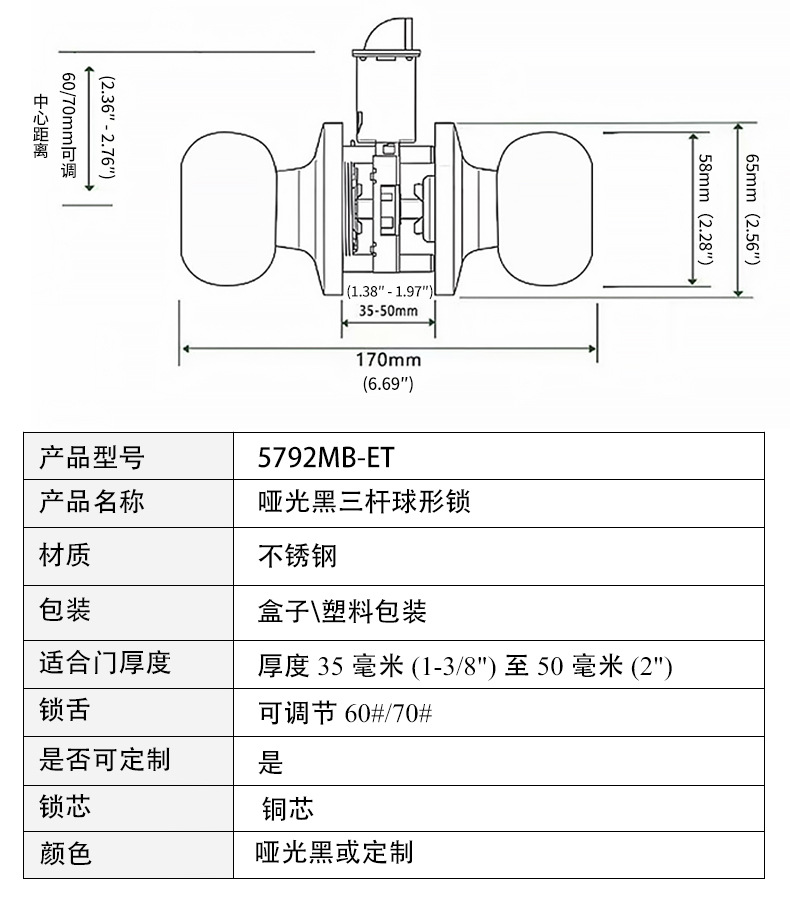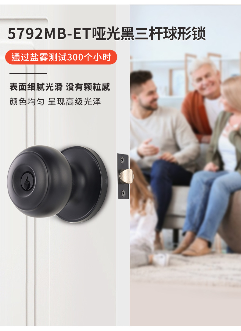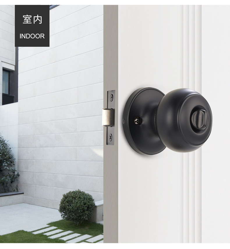 5792MB-ET マットブラックラウンドロック屋内ステンレス鋼ボールロック寝室のドアロックトイレ浴室のドアロック