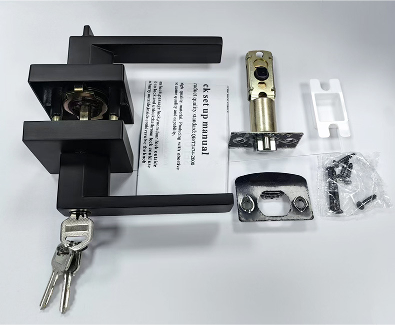 802-MB-ET アルミ合金ドアロックハンドルロック寝室ドアロックサイレントマットブラックドアロックハンドルロック付き