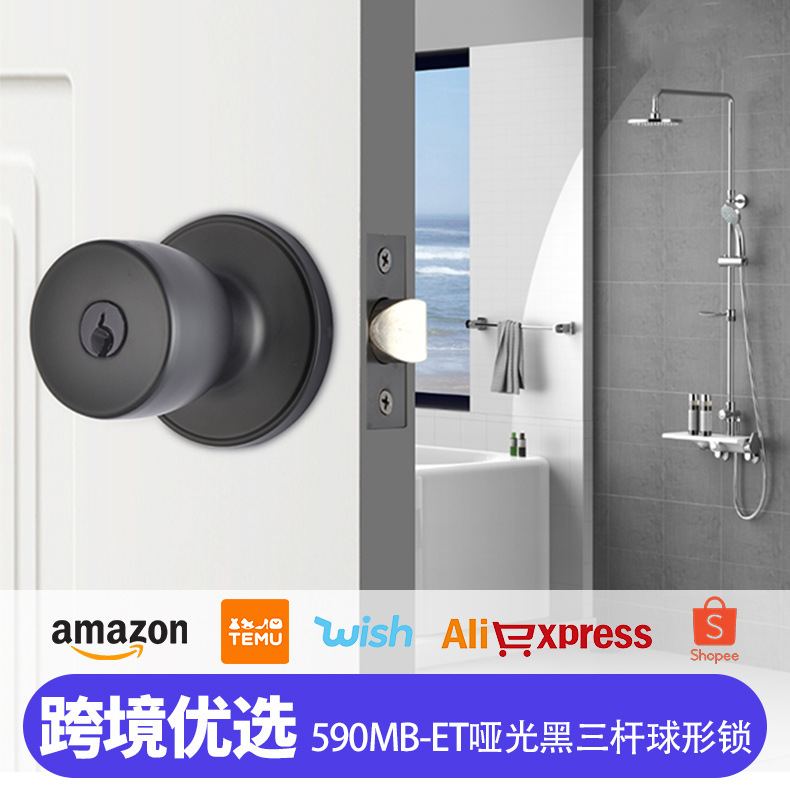 590MB-ET 3 ポストステンレス鋼ボールロック寝室 3 ポストドアロックマットブラック 3 ポスト浴室ボールロック