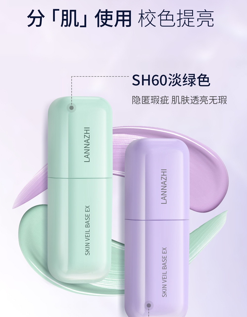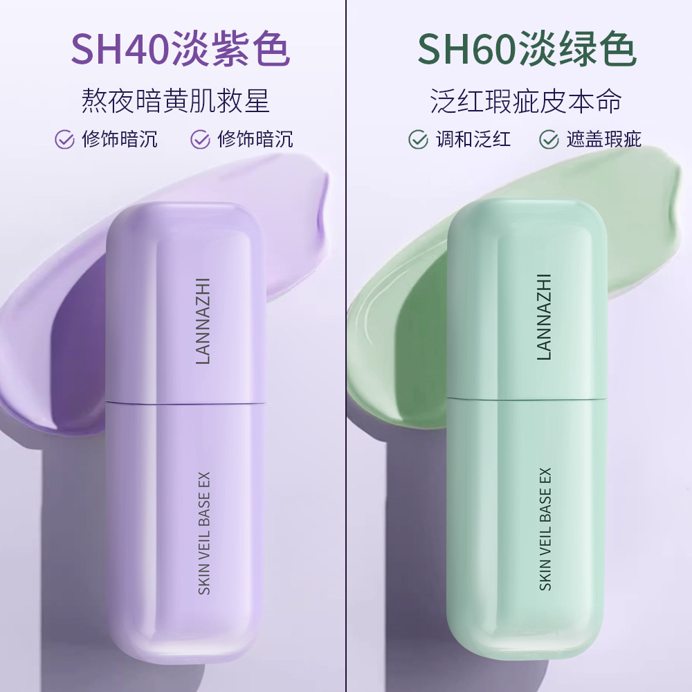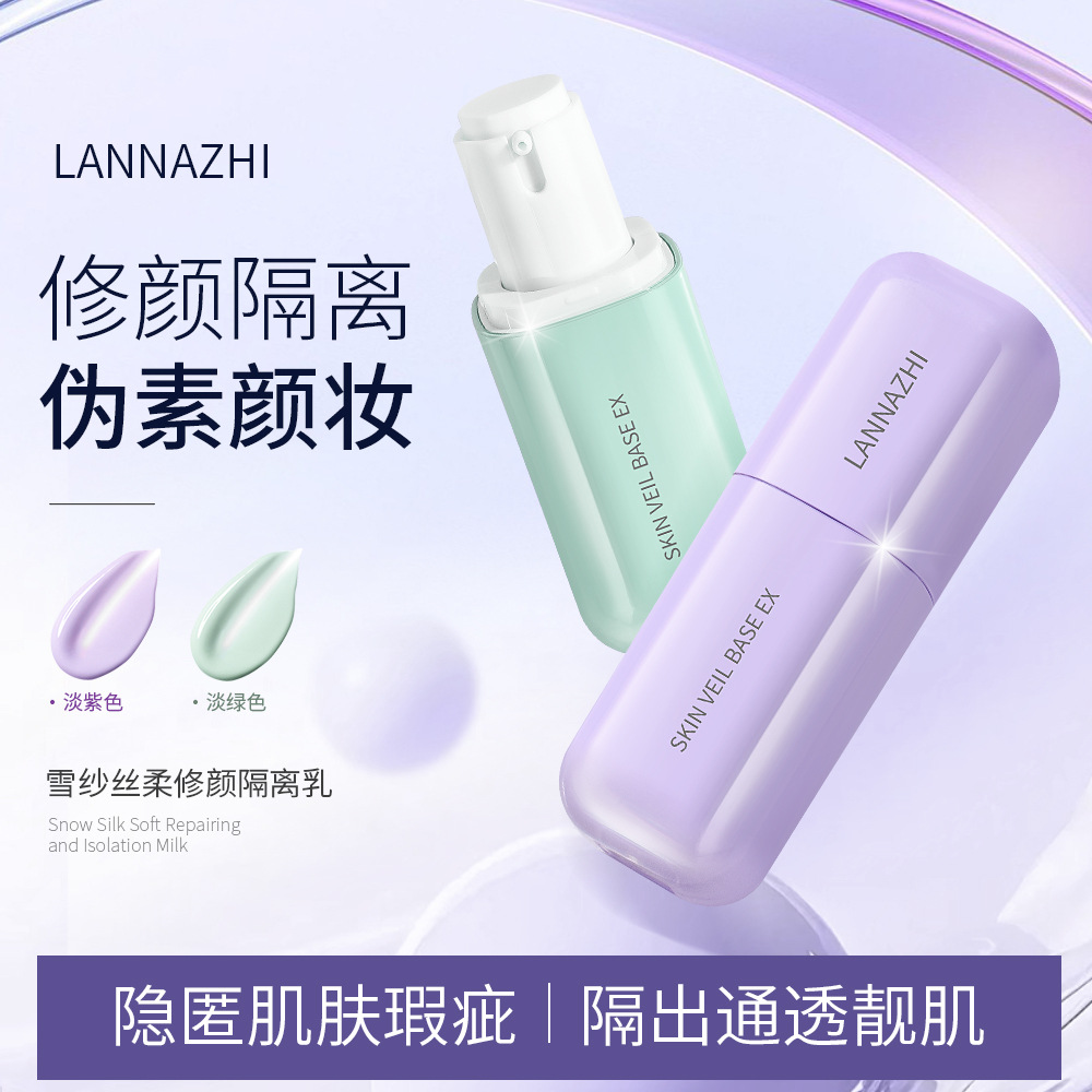 韩国lanzhi蓝芝雪纱丝柔三合一隔离霜30ml紫色绿色打底妆前乳遮瑕