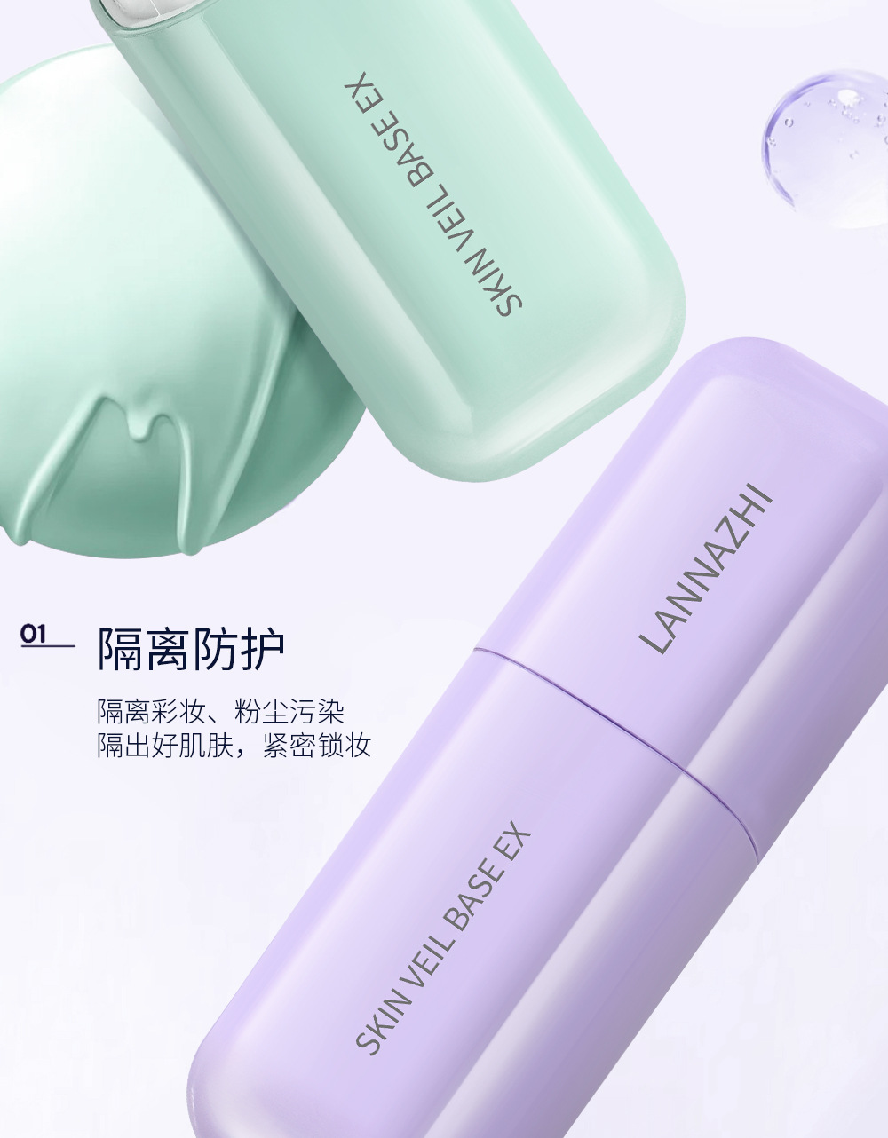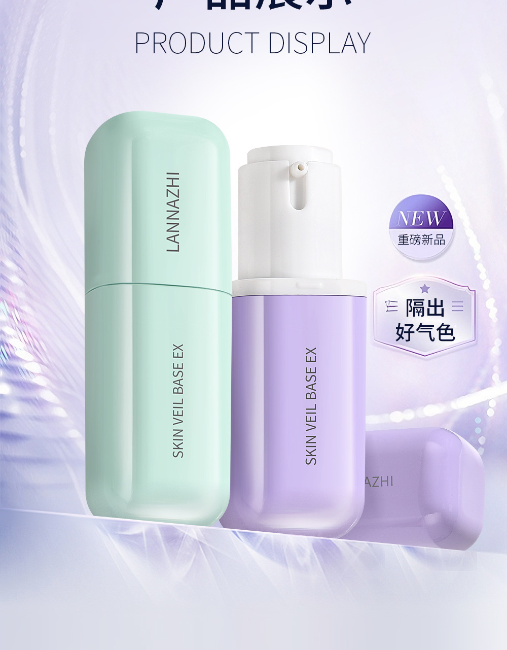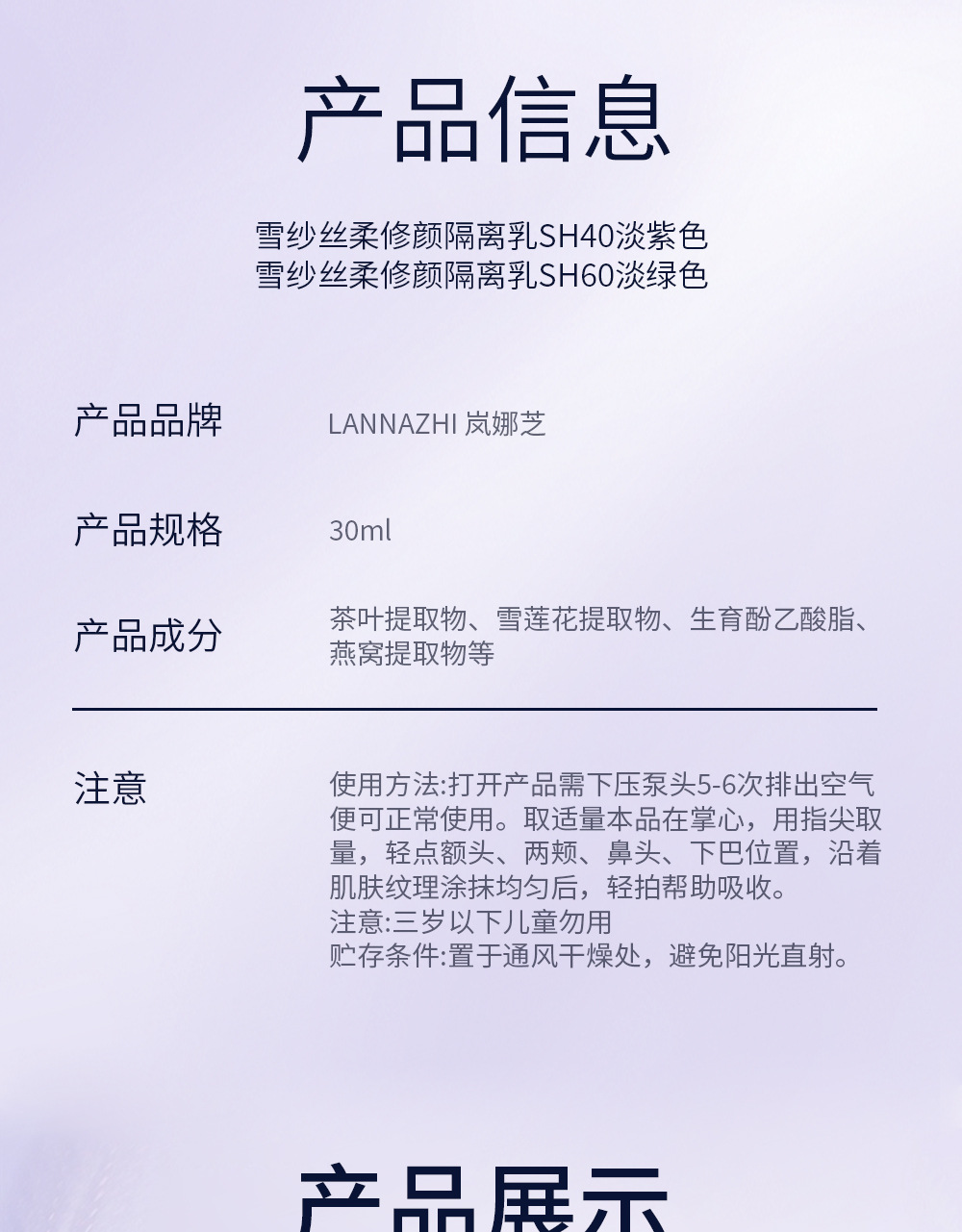 韩国lanzhi蓝芝雪纱丝柔三合一隔离霜30ml紫色绿色打底妆前乳遮瑕