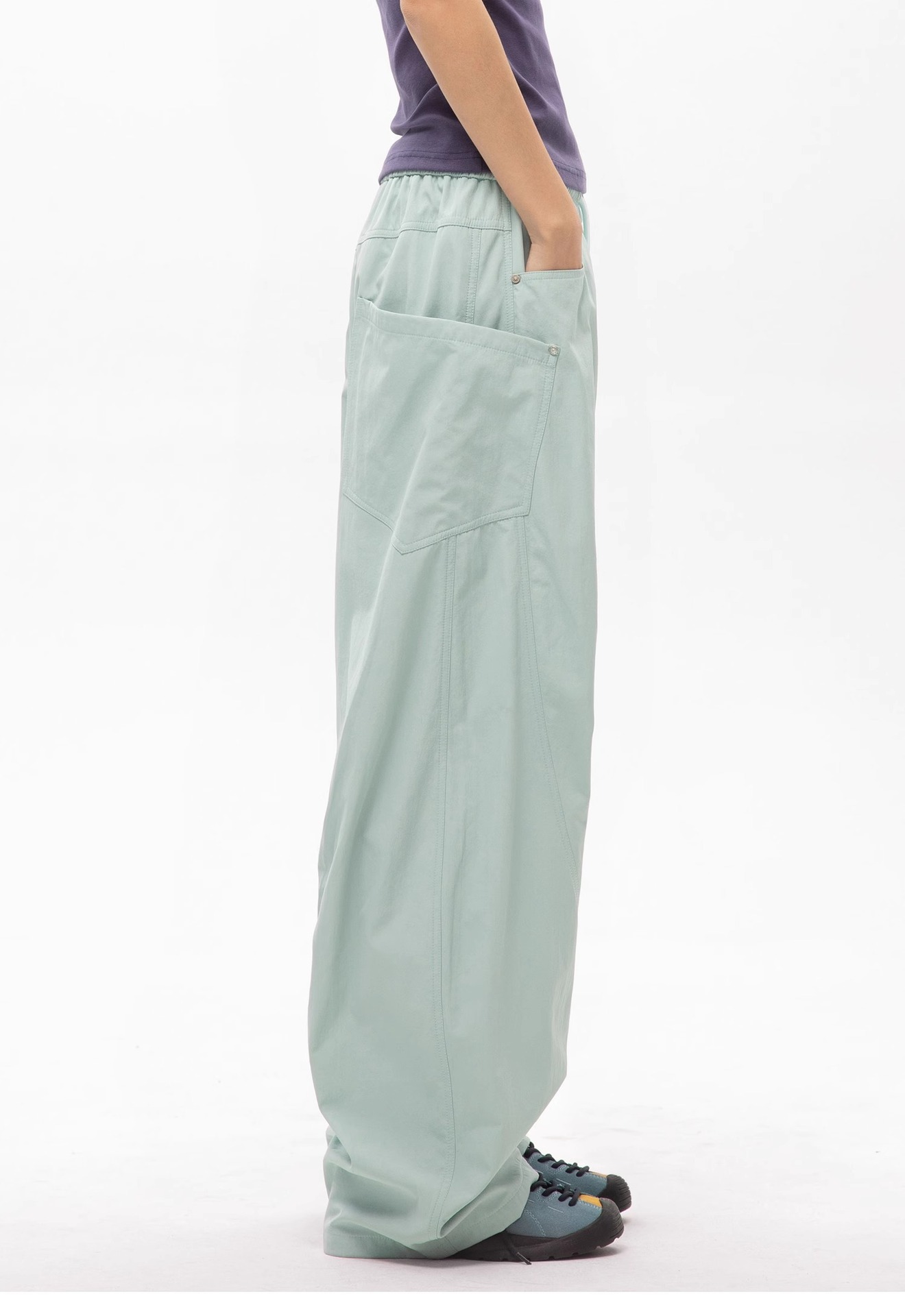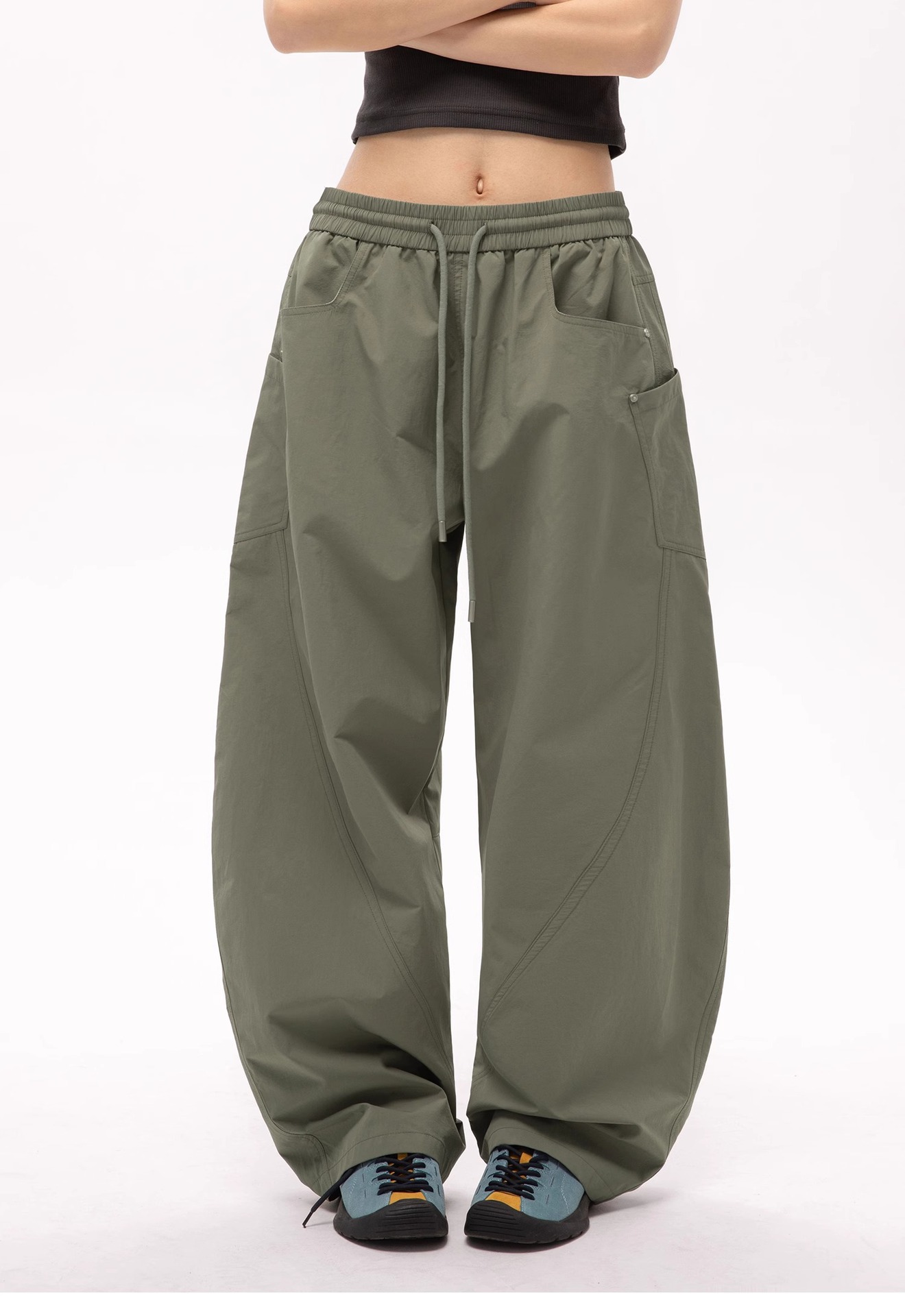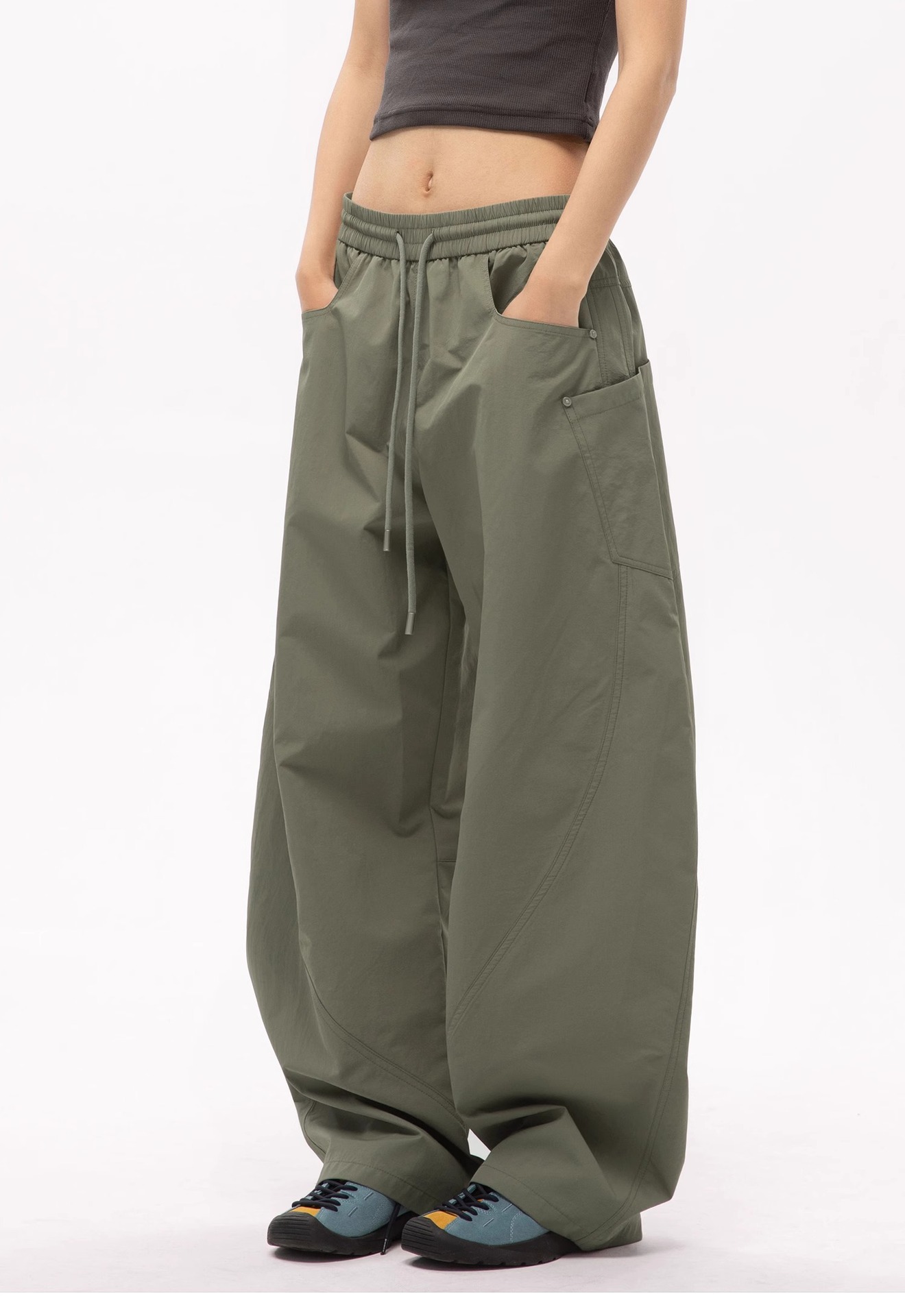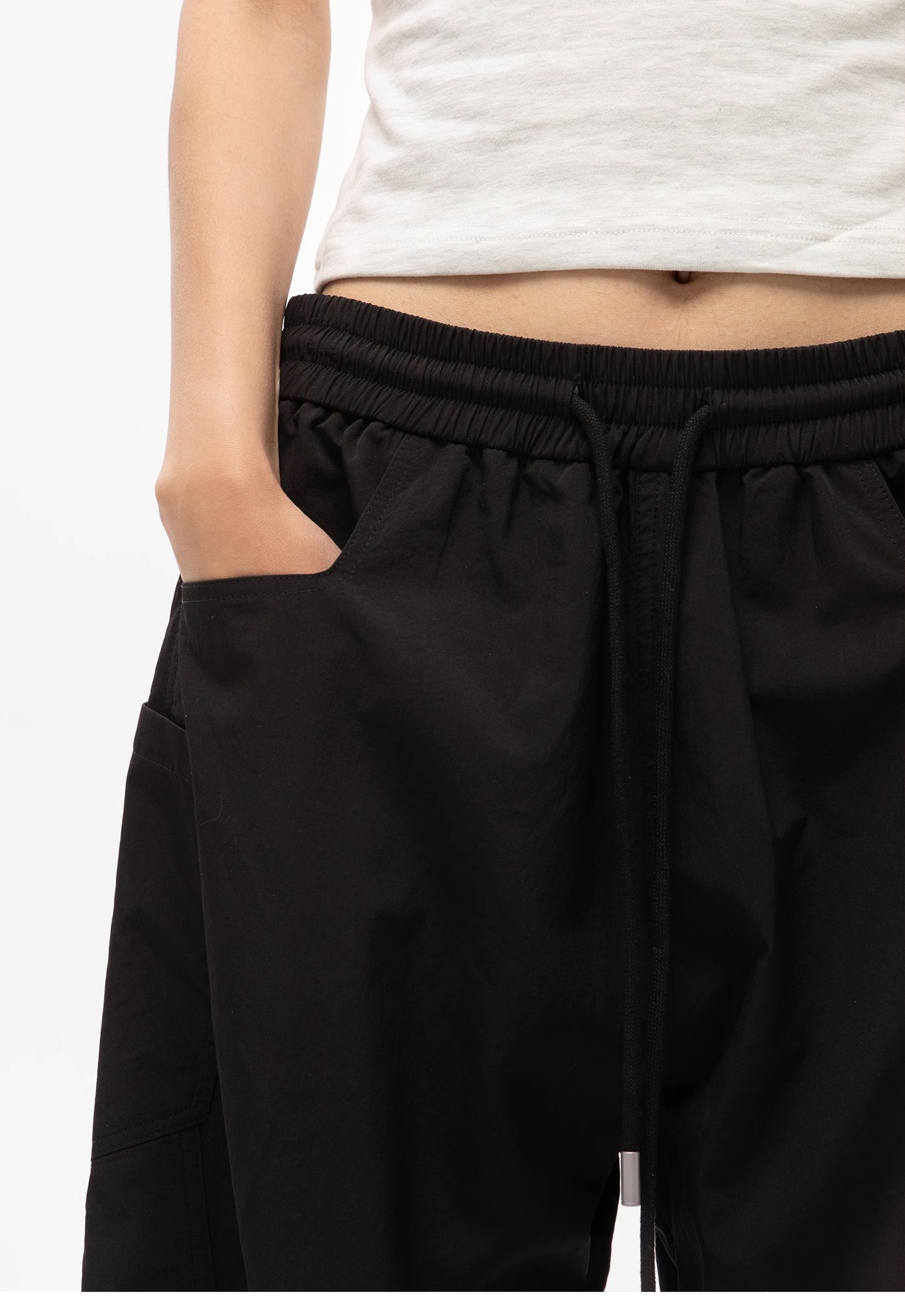 跨境夏季速干侧边三杠女裤阔腿松紧腰抽绳宽松美式工装长裤伞兵裤