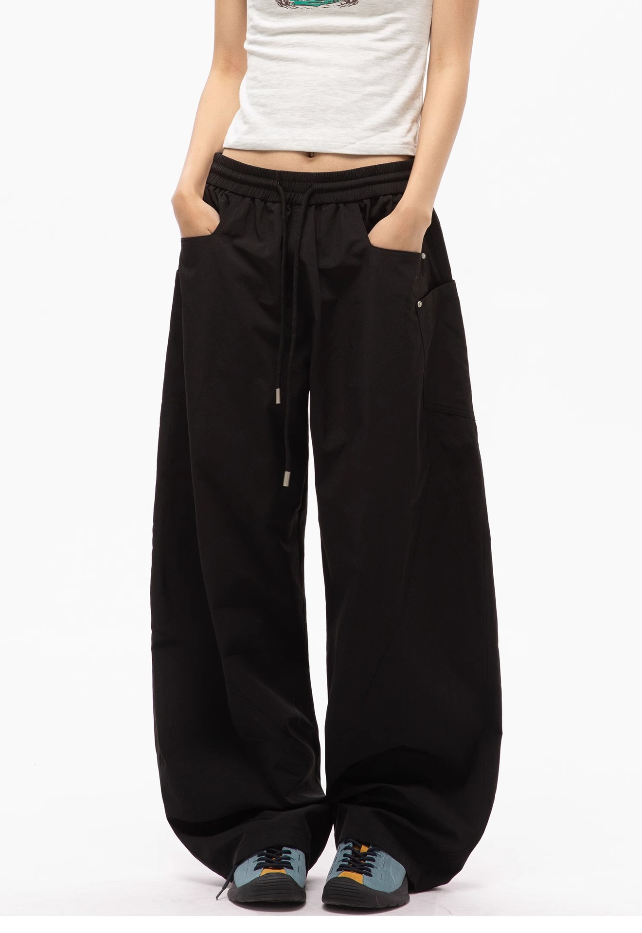 复古星星百搭宽大立体休闲裤女2025春夏新款宽松阔腿伞裤拖地长裤