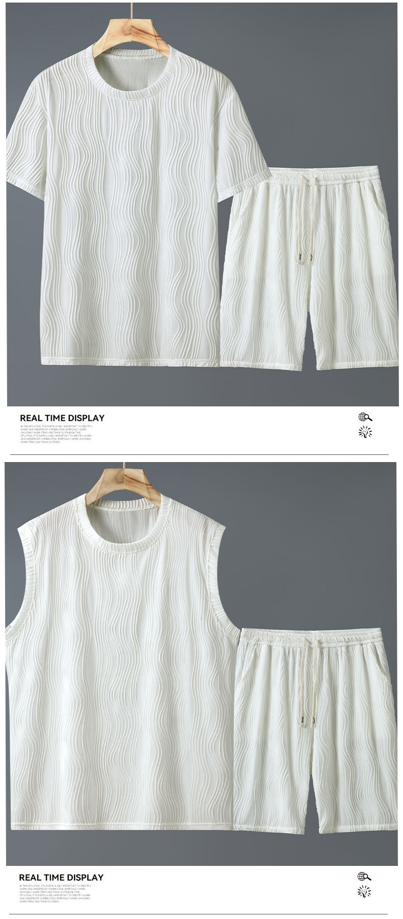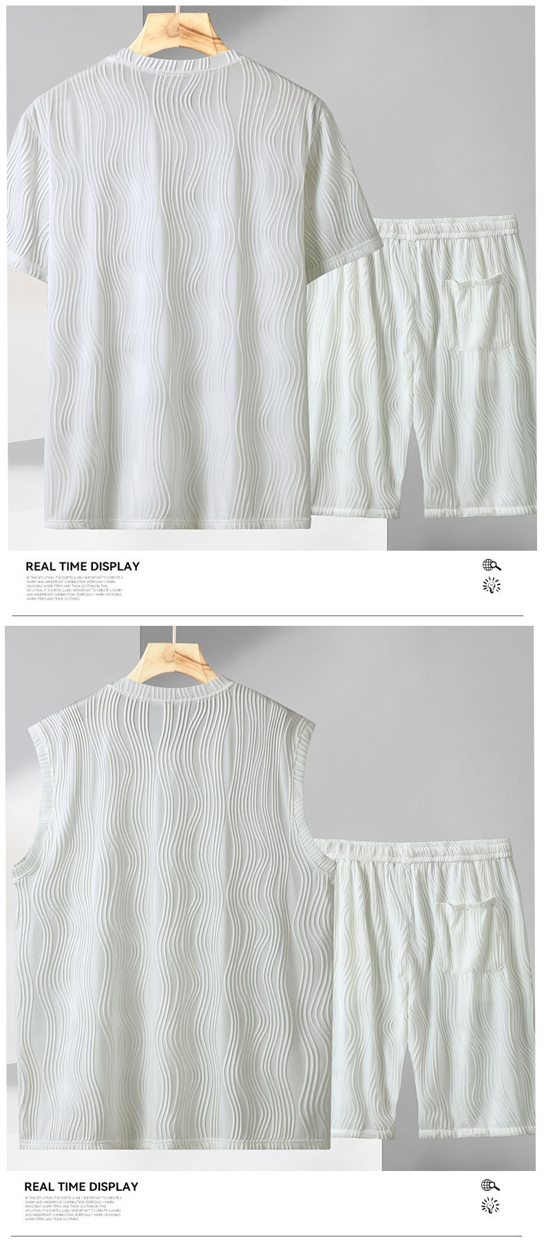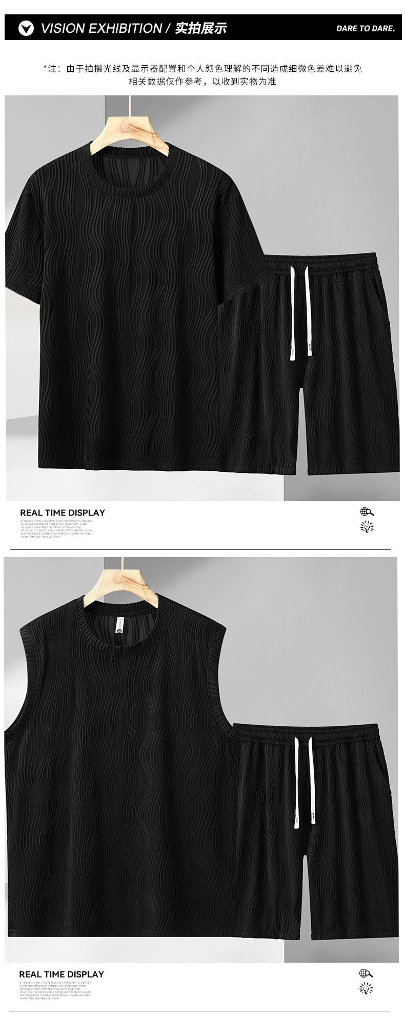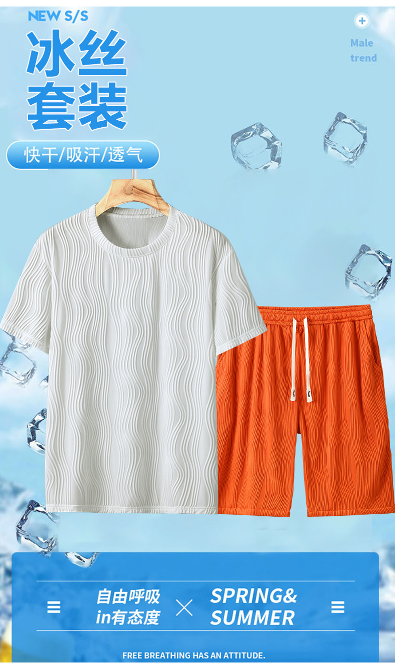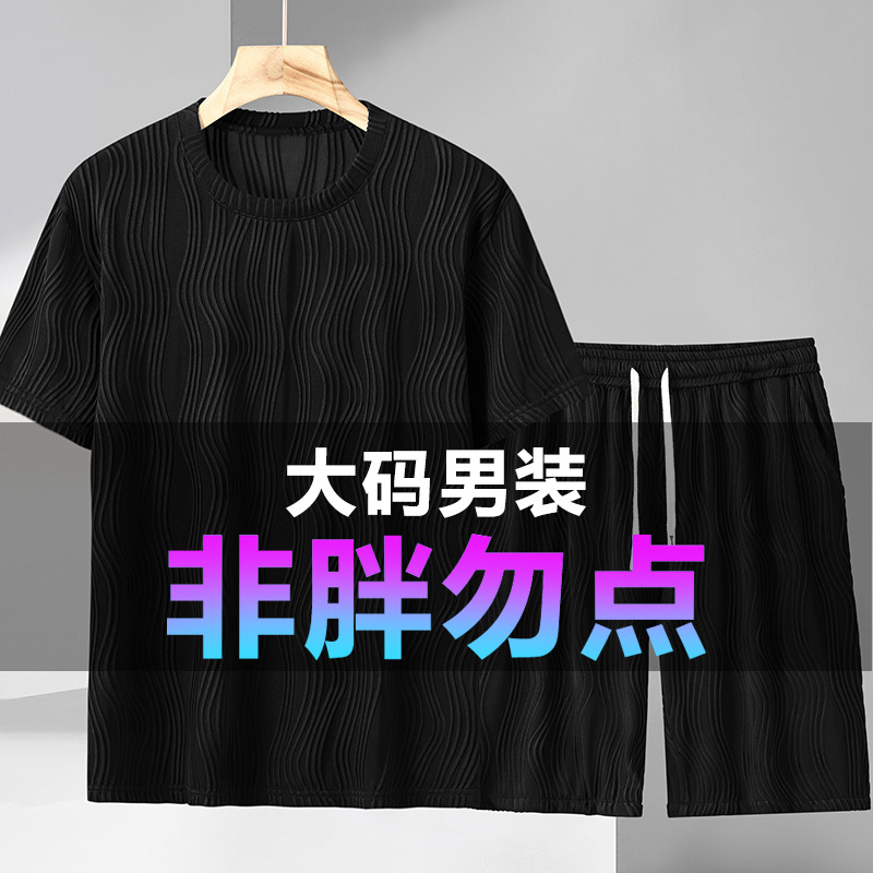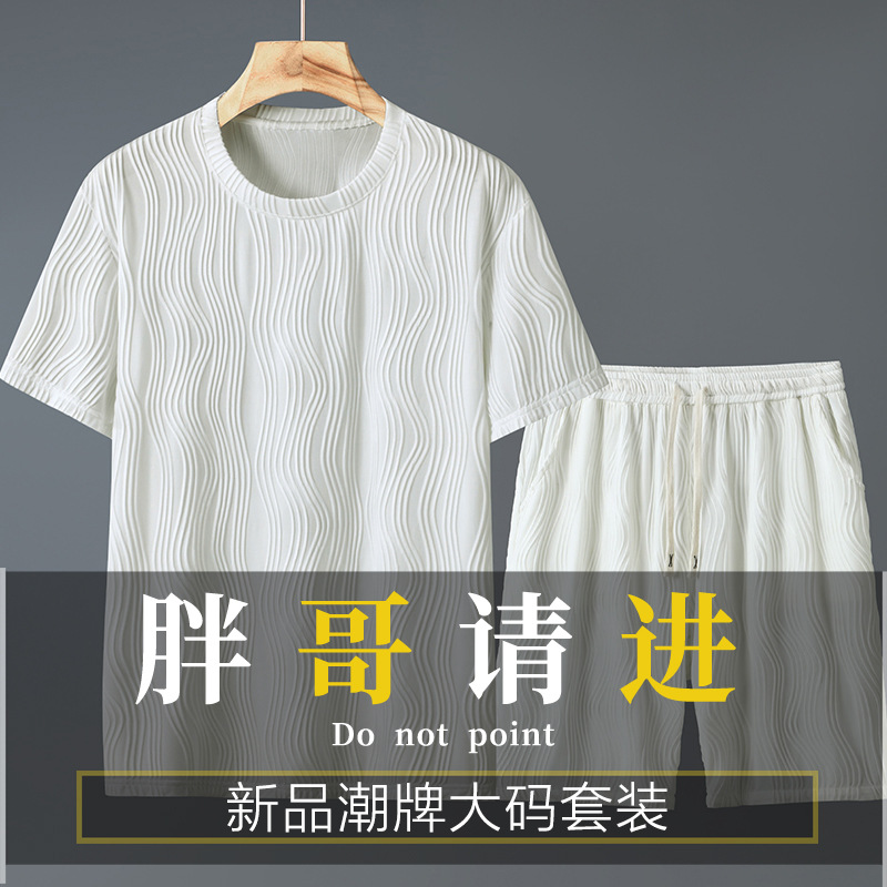 大きいサイズの男性の氷糸のtシャツの半袖の夏の新型のゆったりしている太った人は太っていることをプラスしてショートパンツのカジュアルなスーツの2531をプラスします。