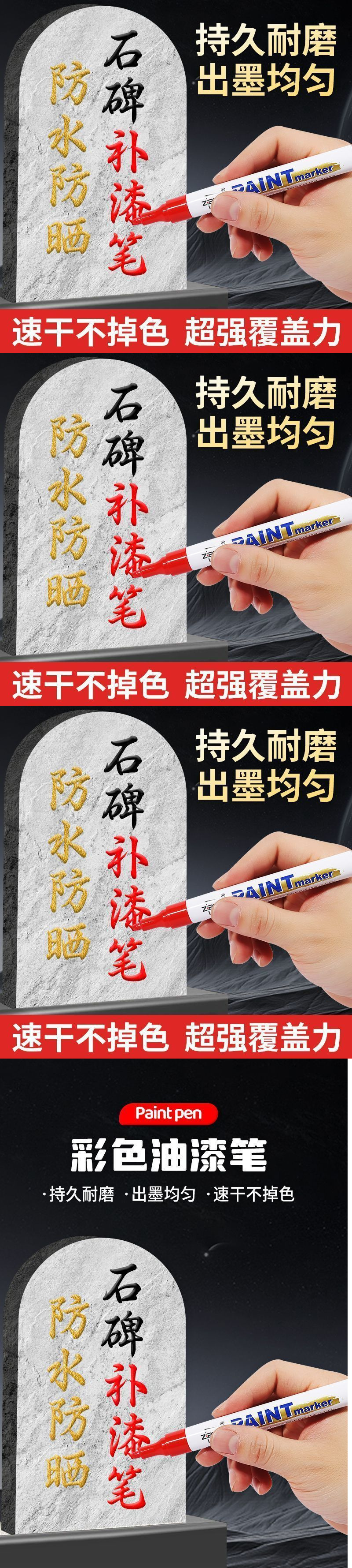 墓石塗装ペン無色塗装ペン赤黒防水永久描画金石碑補色マーカーペン